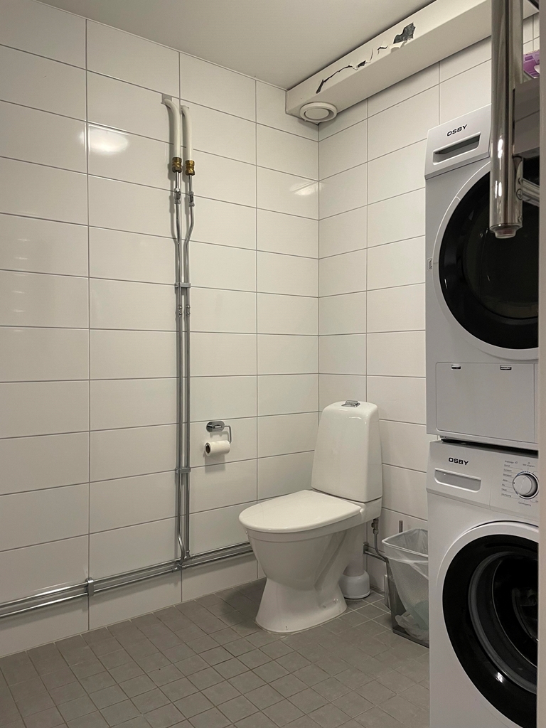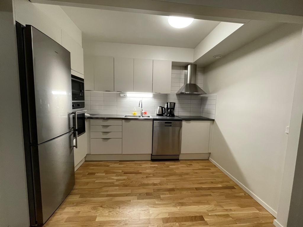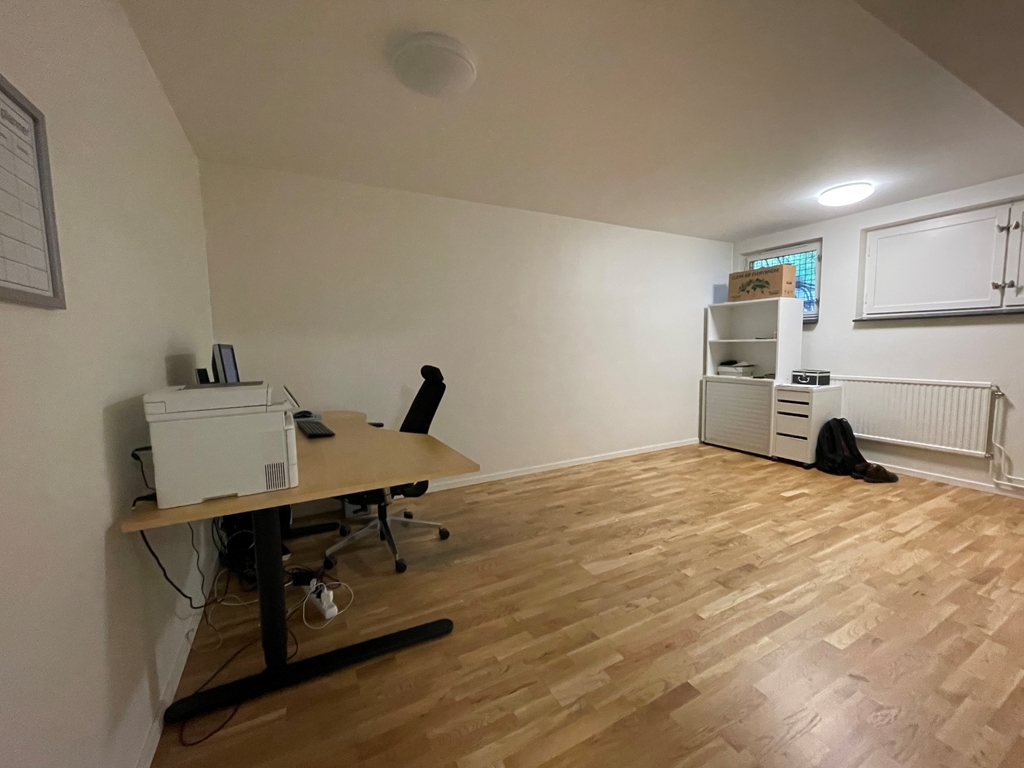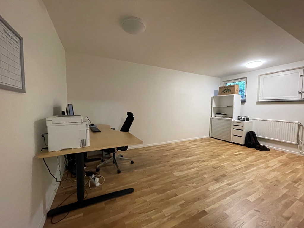 Lokalen ligger en halvtrappa ner och har en egen ingång. Lokalen har genomgående parkett, vitmålade väggar, nytt full utrustat kök med diskmaskin, kaklat badrum med duschmöjlighet samt tvätt och torktumlare.