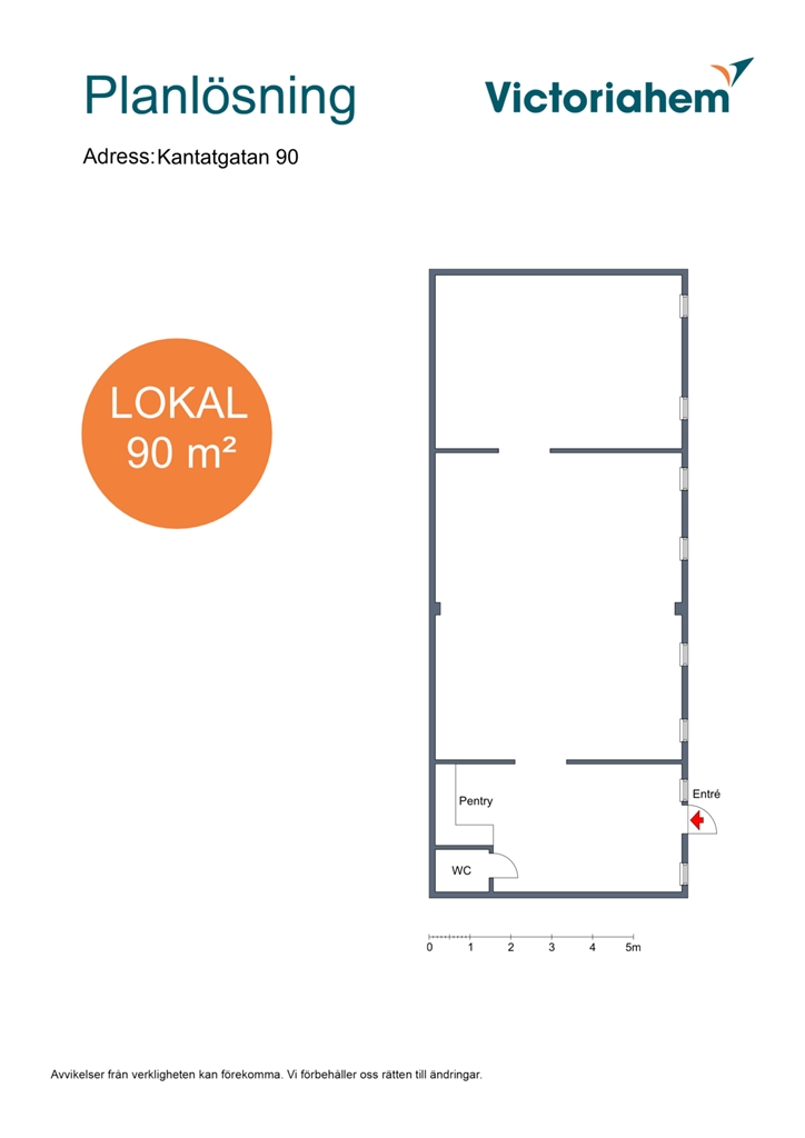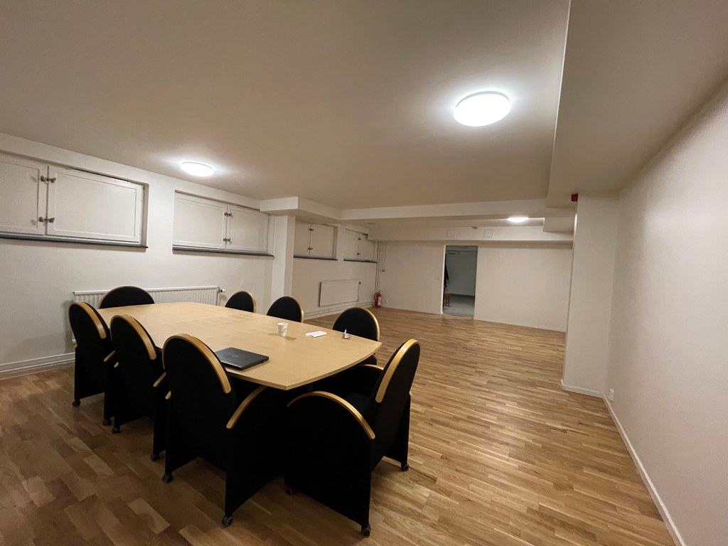 När du kommer in i lokalen välkomnas du av en stor öppen yta som kan användas till olika saker beroende på verksamhet. Från hallen når du badrummet och köket. Från hallen kommer du sedan in i ett större rum som leder vidare till ytterligare ett rum.