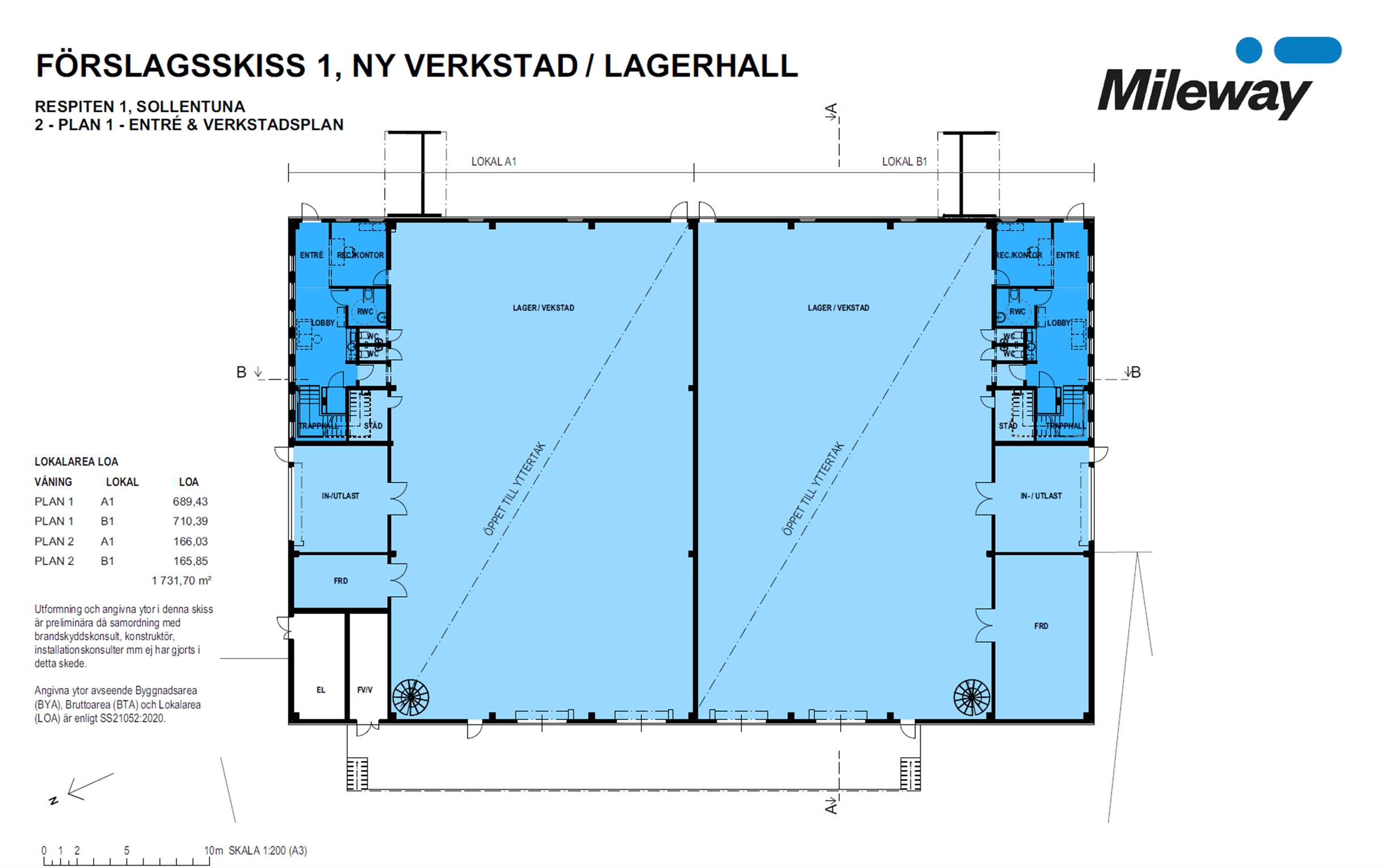En helt ny, toppmodern lagerfastighet planeras att stå klar i slutet av 2027 i Rotebro, Sollentuna. Med en total yta på cirka 1 732 kvm erbjuder byggnaden högsta flexibilitet och kan anpassas för upp till två hyresgäster. Lokalerna kan hyras som en enhet på hela 1 732 kvm eller delas upp i två enheter om 857 kvm respektive 875 kvm. Redan från start finns möjligheten att påverka utformningen och skapa en lokal som är skräddarsydd för just er verksamhet.