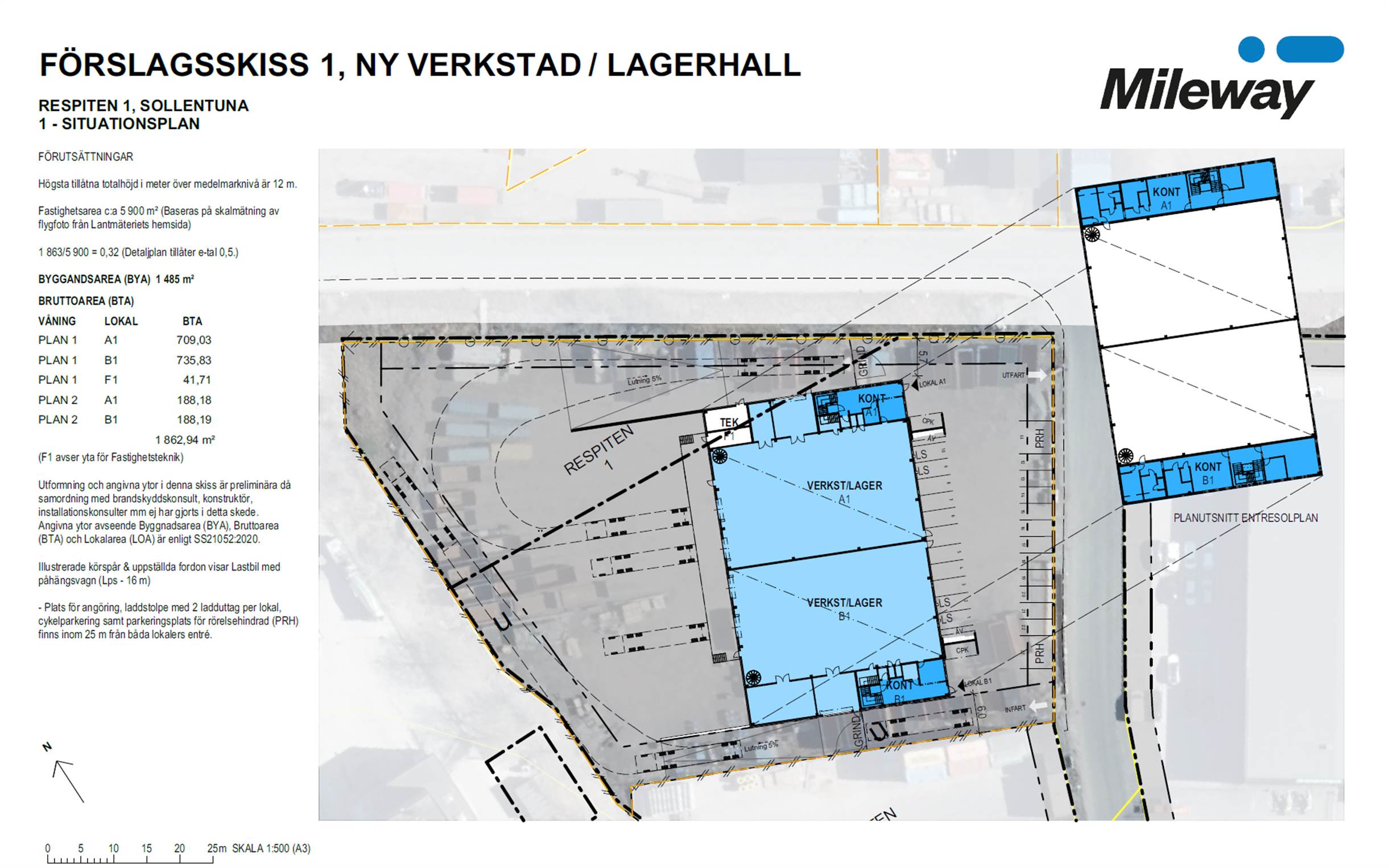 • Effektiva lastningslösningar: Gemensam lastkaj med 4 lasthus (2 per lokal vid uppdelning). Samt 2 markportar (1 per lokal vid uppdelning).
