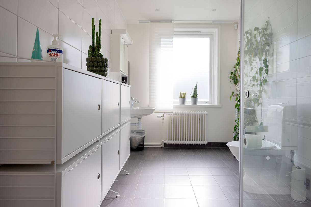 Ytan är fördelad på flera separata rum som skapar goda förutsättningar för både enskilt arbete och samarbete. Här finns även kök och pentry, vilket bidrar till en bekväm arbetsmiljö, samt två toaletter, varav en är tillgänglighetsanpassad (RWC). För extra komfort finns även dusch i lokalen.