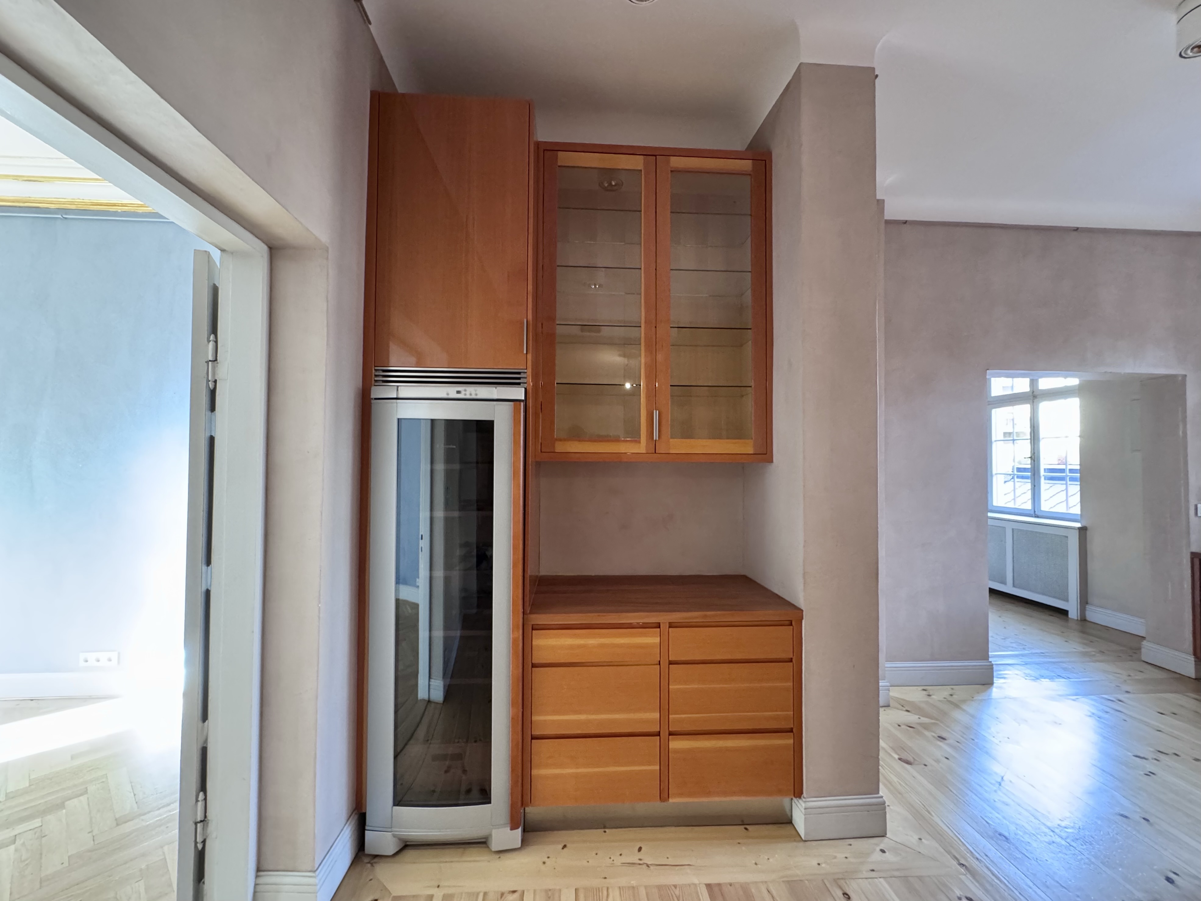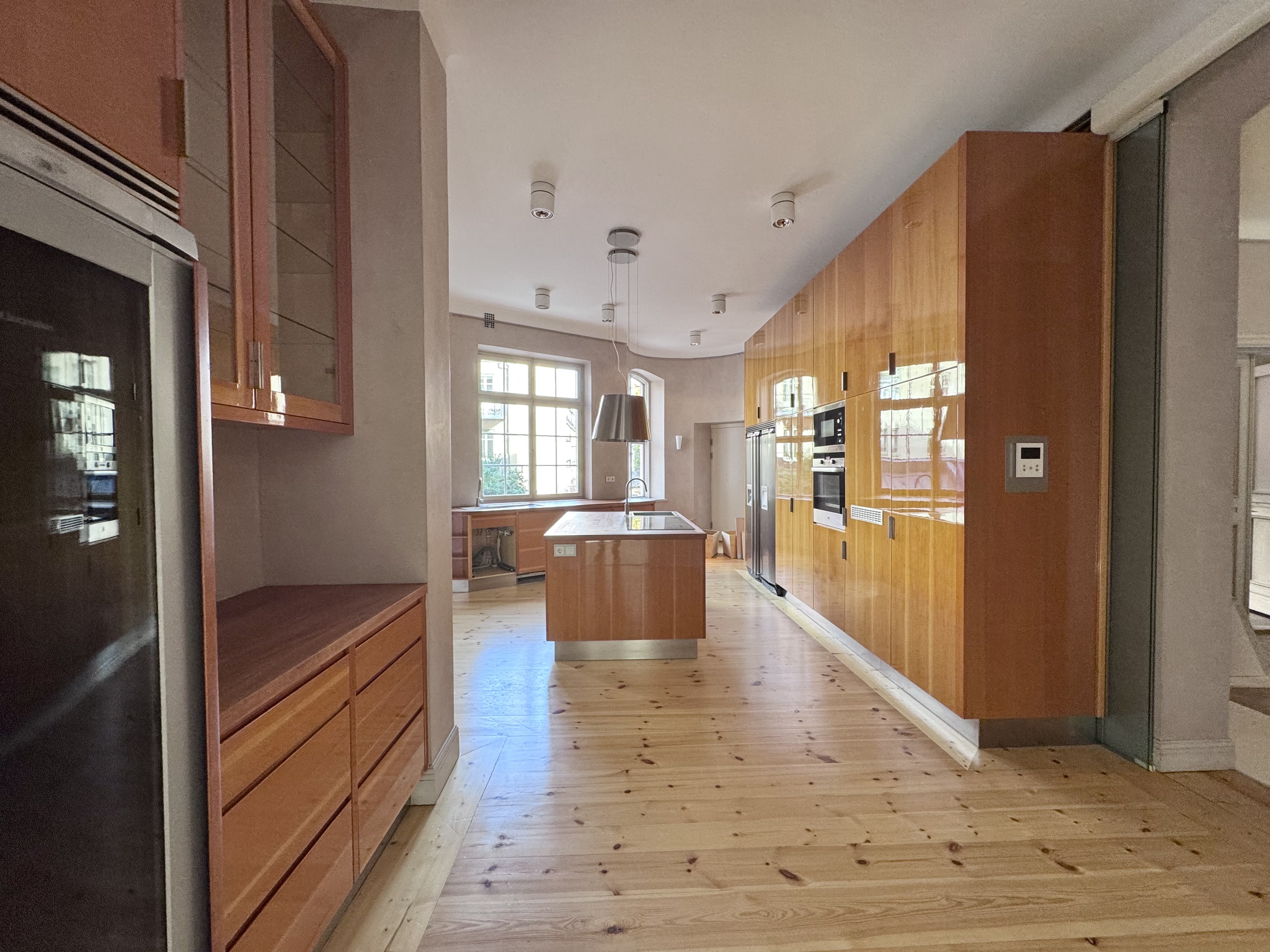 Den effektiva planlösningen omfattar flera kontorsrum, gemensamma ytor och ett fullt utrustat kök. Här möts klassisk fastighetskaraktär och moderna funktioner, vilket gör lokalen perfekt för företag som värdesätter både stil och funktionalitet.