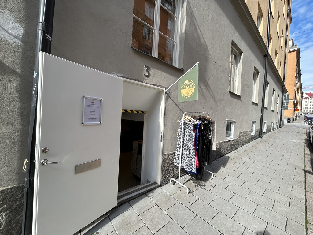 Den ligger en halv trappa ner med fönster längs fasaden som ger insyn och ett behagligt ljusinsläpp.
