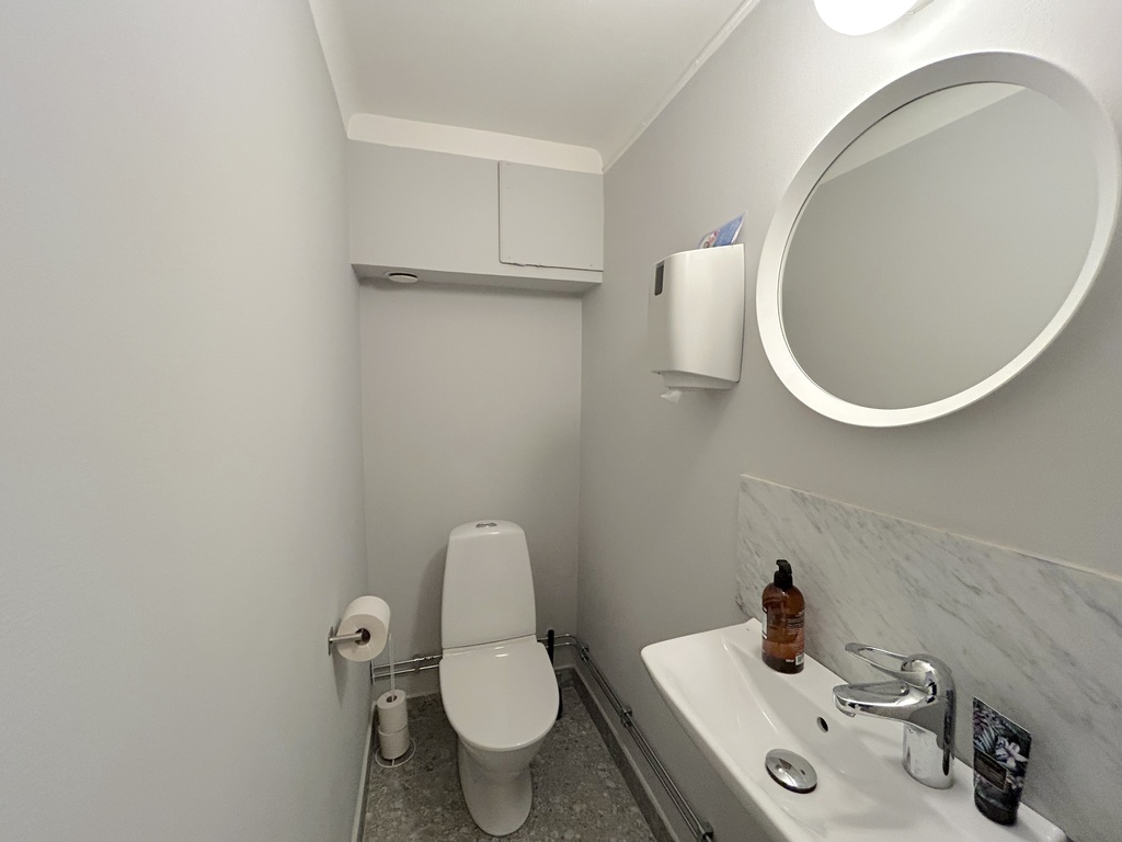 Lokalen består av ett större rum med bra planlösning, pentry och wc. Det finns även ett handfat i lokalen och möjlighet att dra nytt vatten om det behövs. Här finns goda förutsättningar för olika typer av verksamheter. Idag används den som butik men den har tidigare varit salong och passar lika bra som kontor, studio eller mottagning.