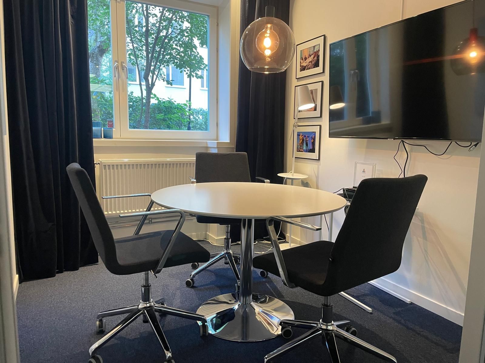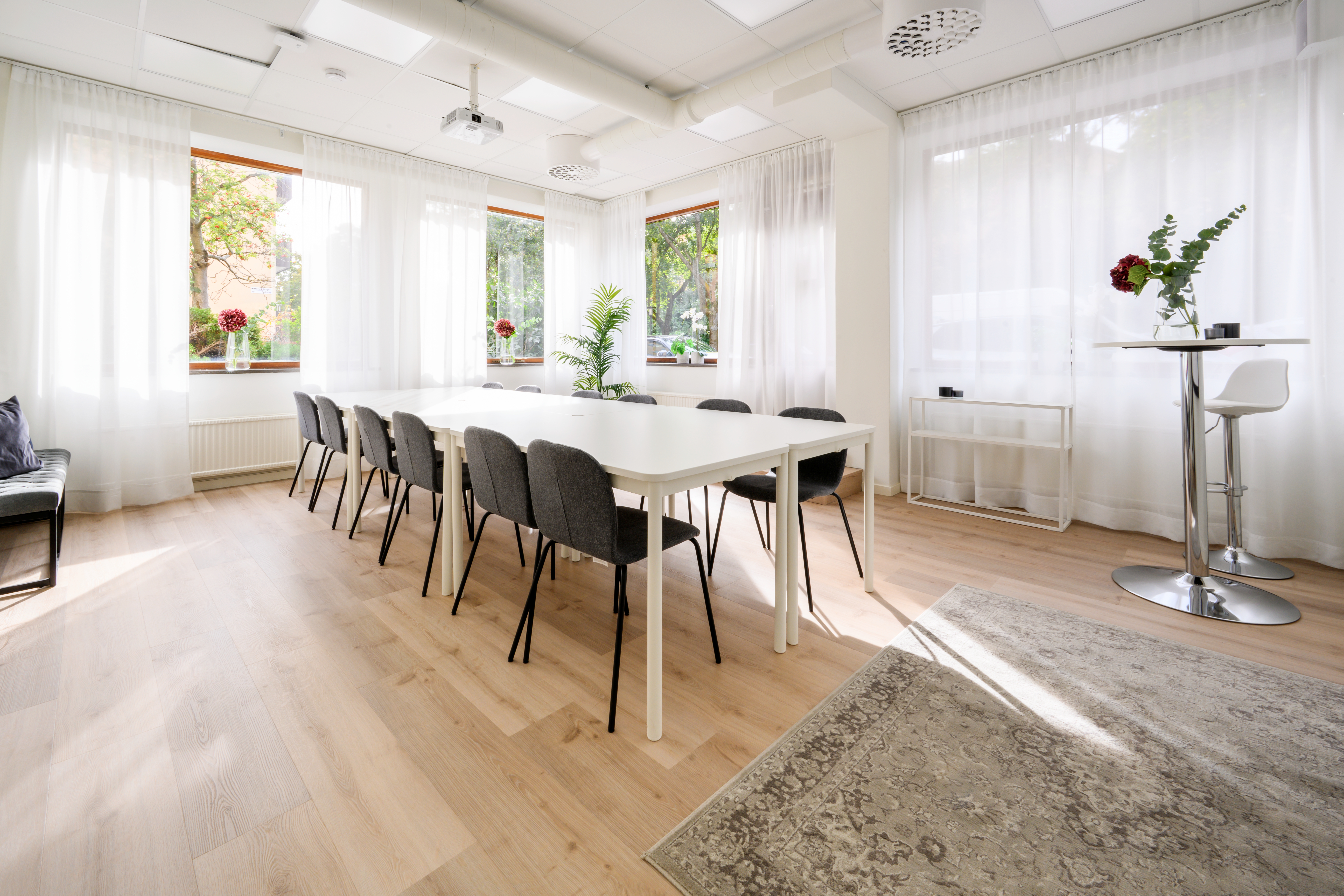 Lokalen har nyrenoverad öppen planlösning mot gatan och med ett stort konferensrum för ca 20 pers samt två mindre för ca 6-8 pers.
