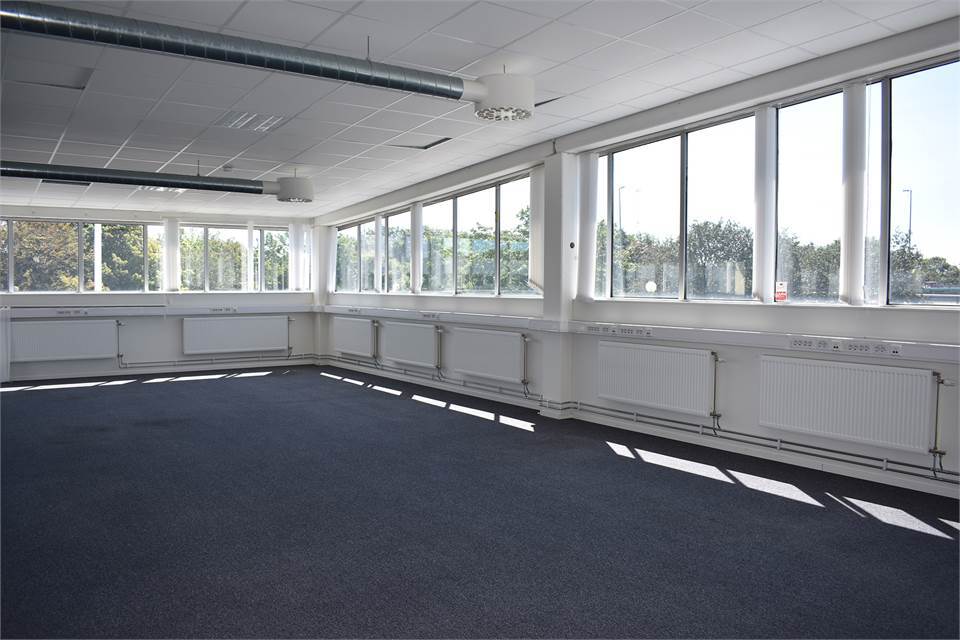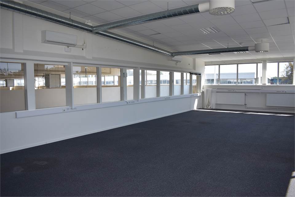 De öppna ytorna tillsammans med god takhöjd skapar en luftig och inbjudande miljö. Lokalen håller genomgående hög standard med välskötta ytskikt som ger ett professionellt intryck.