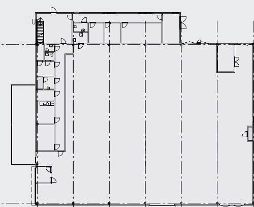 Här finns även kontorsdelar och personalutrymmen som gör det enkelt att samla hela verksamheten under ett tak. De stora portarna och genomtänkta flödena ger goda logistiska förutsättningar.