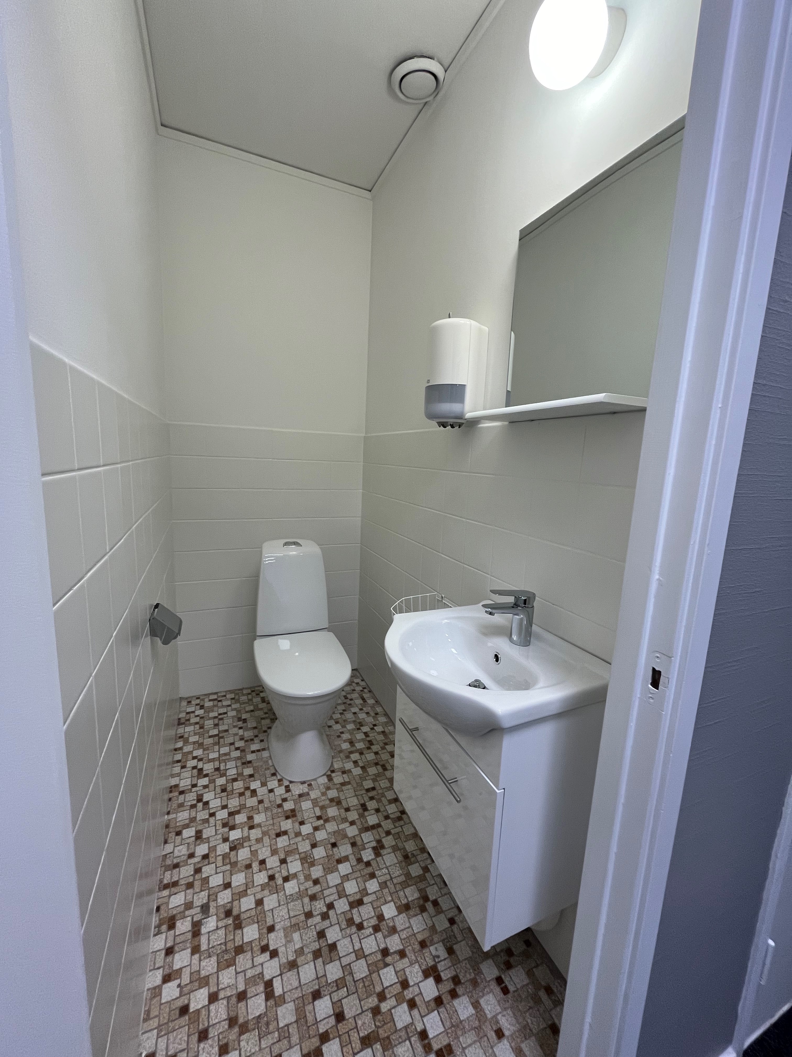 Köket renoverades 2020, då även golvet byttes. Resten av lokalen renoverades 2024.