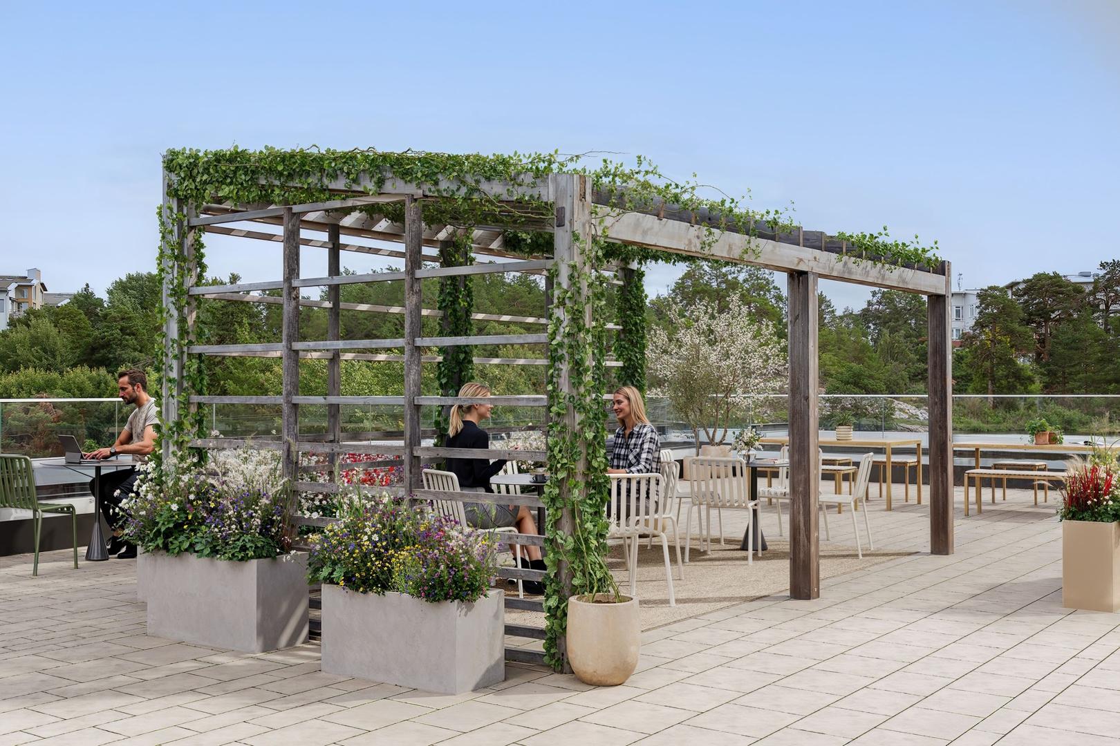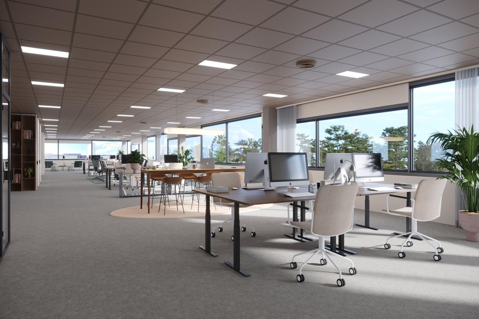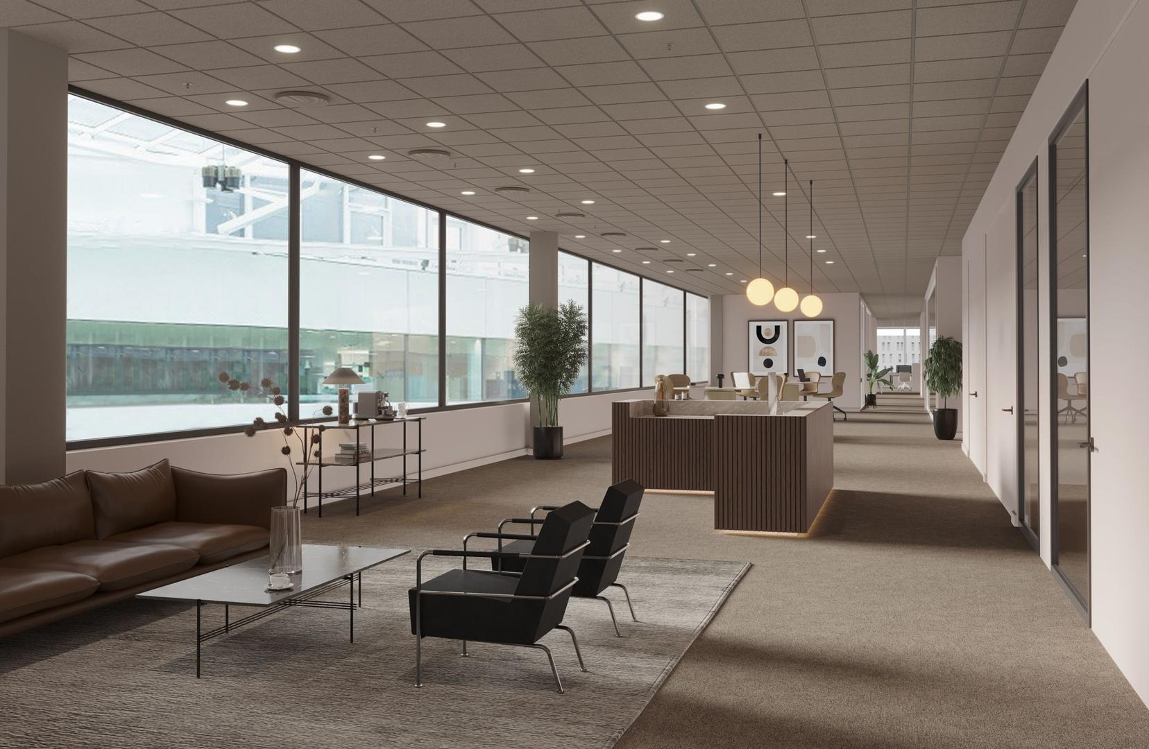 Stora kontorslokaler med terrass i huset.