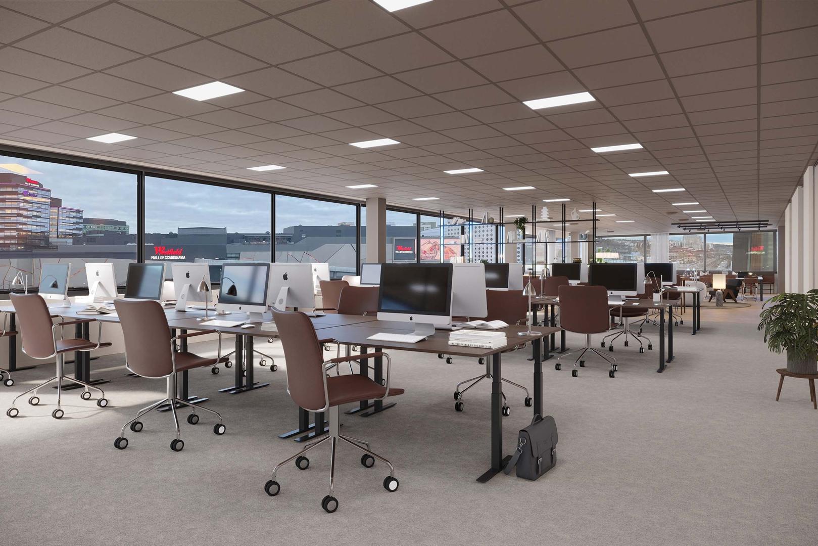 Ljusa kontorslokaler på 2-6 tr (helplanen är ca 1 365 kvm styck) i attraktivt läge nära kommunikationerna i Arenastaden.