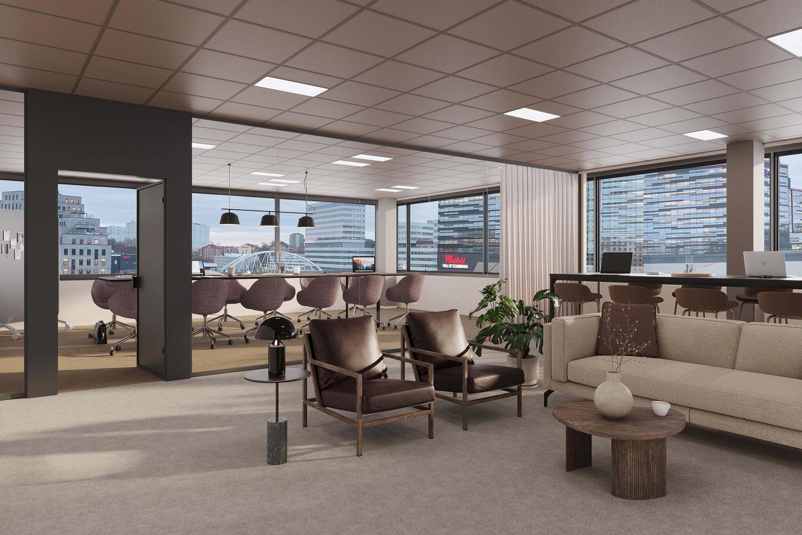 Förutom ett förstklassigt utbud av shopping och restauranger i Mall of Scandinavia finns även många trevliga lunchrestauranger i närområdet. Behöver du bil bara ibland så finns flera bilpooltjänster.