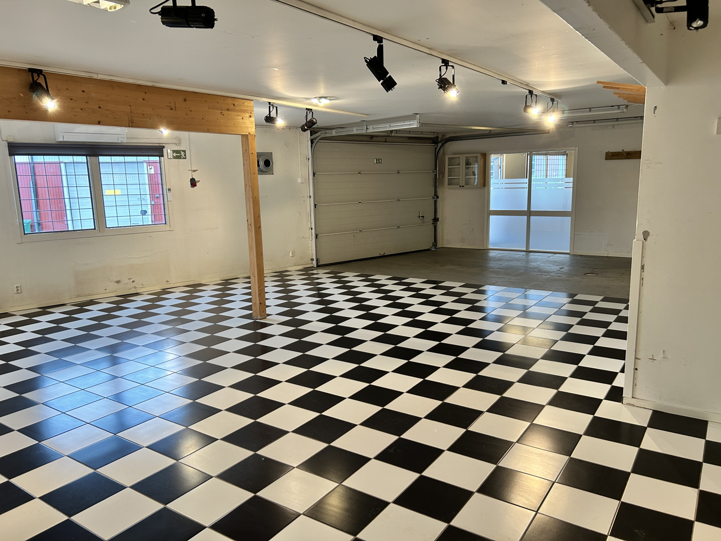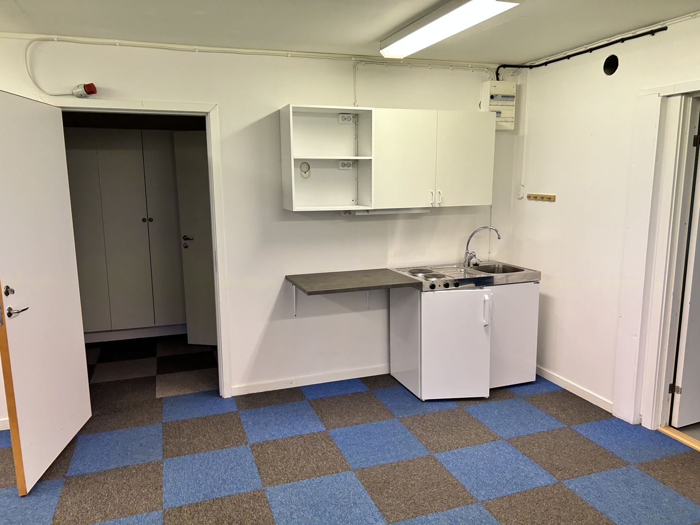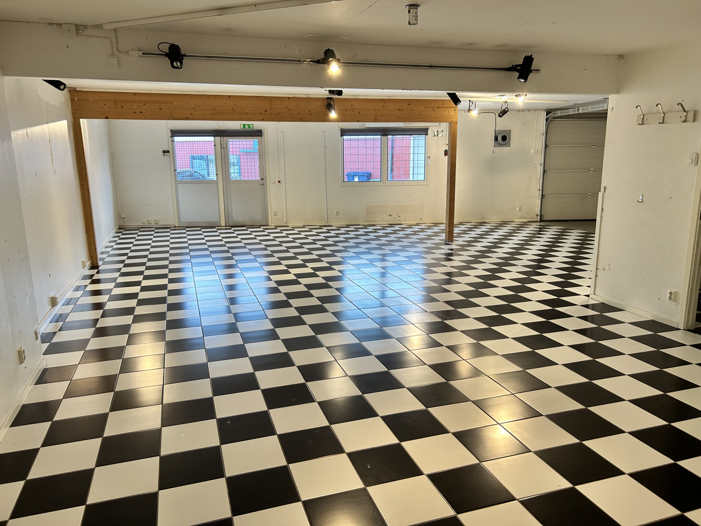 Lokal med kontorsdel, omklädning samt lager/verkstad med port. Kan även fungera som butik.