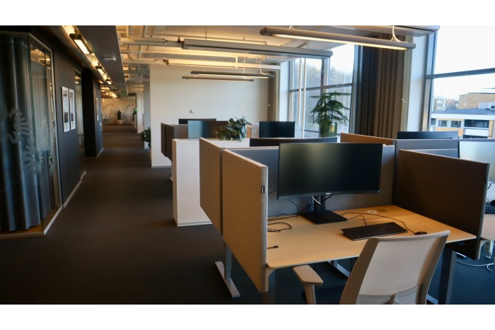 Modern lokal med mestadels öppen planlösning med bästa läge vid entrétorget på Krokslätts fabriker i Mölndal. Attraktiv konferensvåning som kan separeras från kontorsdelarna.