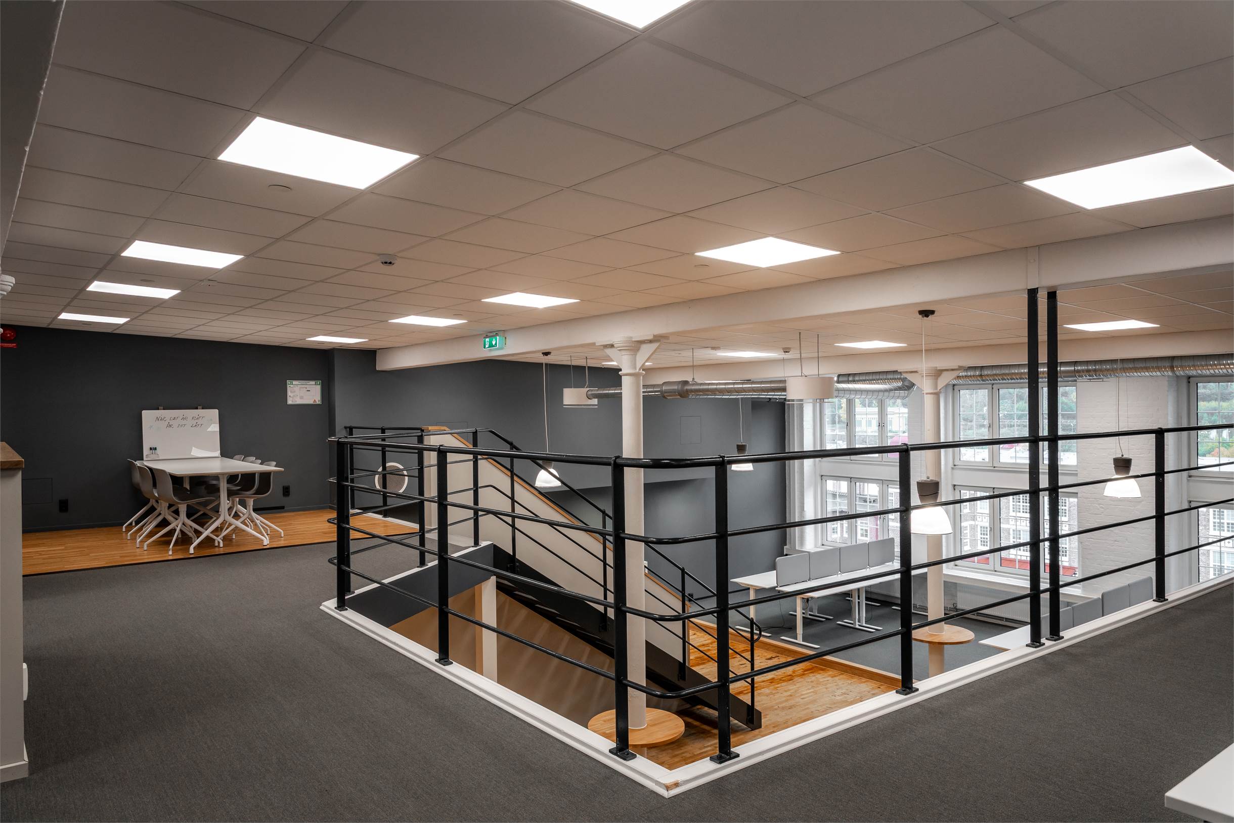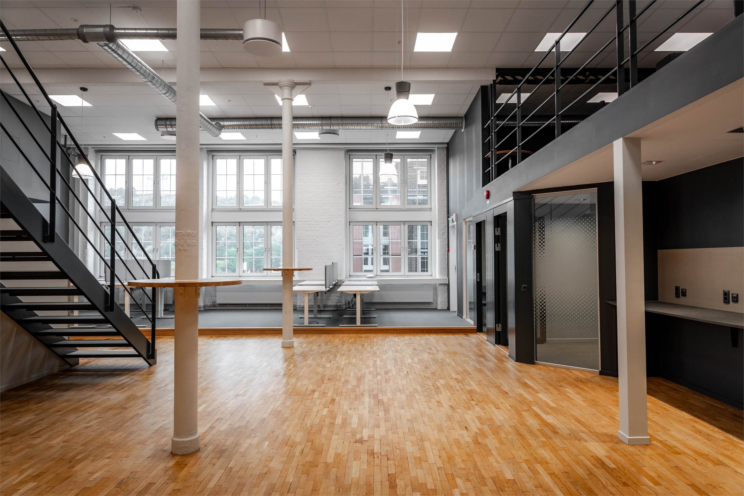 Kontor med fint ljusinsläpp, modern känsla och karaktärsfull industristil