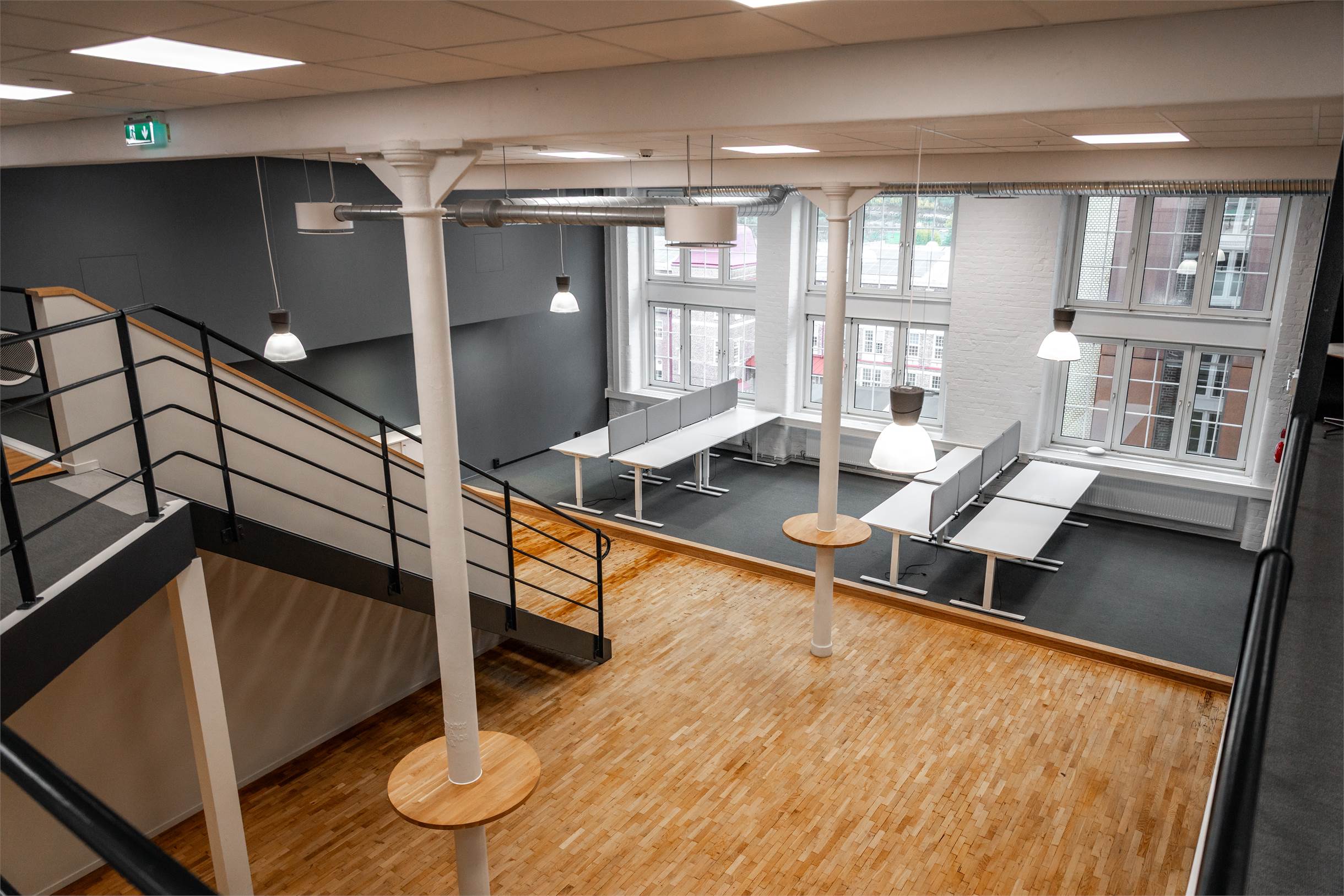 Välkommen till en häftig lokal med högt i tak i den anrika miljön på Krokslätts Fabriker 30, ett område där historisk industri möter modern företagsverksamhet. Lokalen har en planlösning i två nivåer med ett entresolplan som löper runt stgora delar av övervåningen.