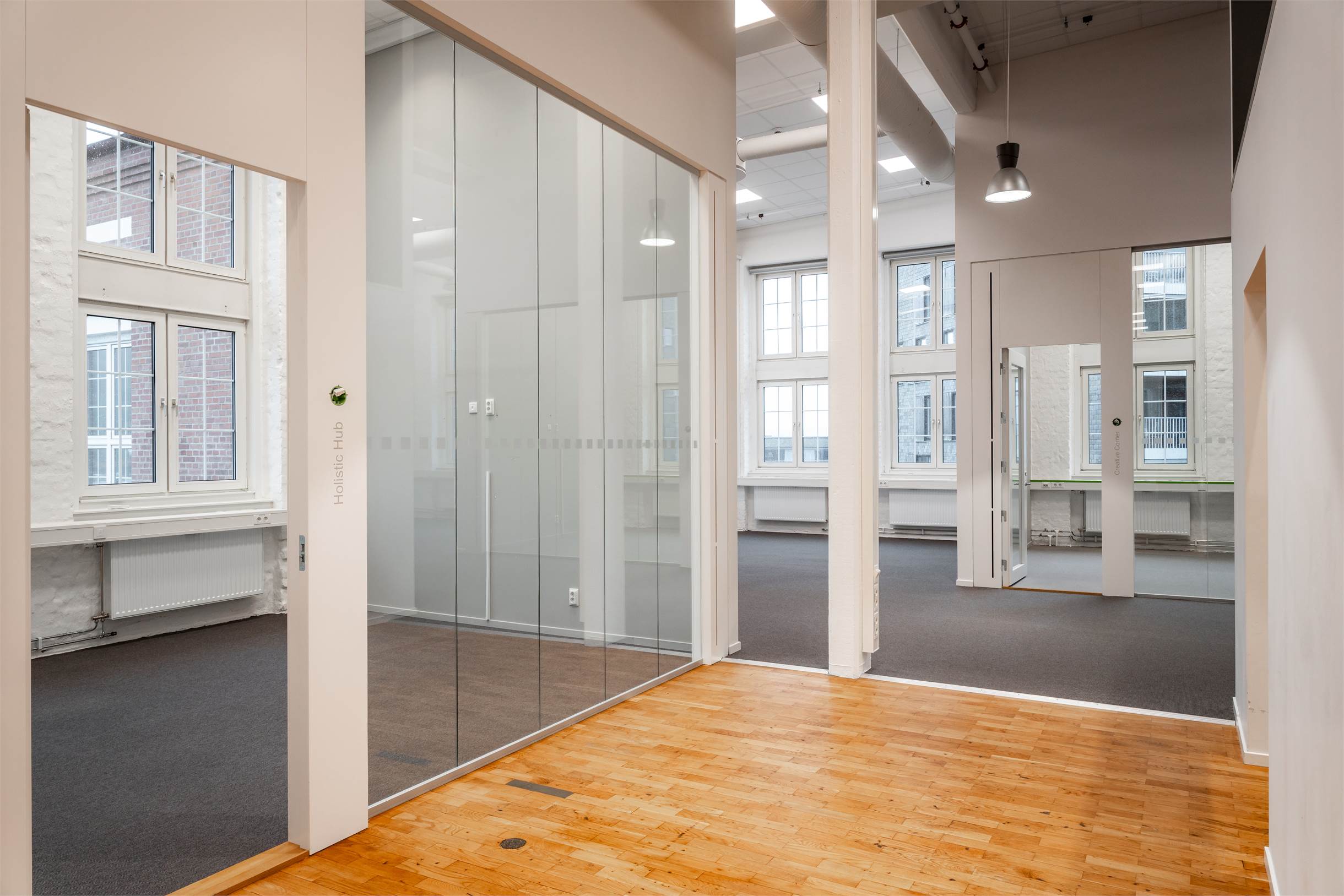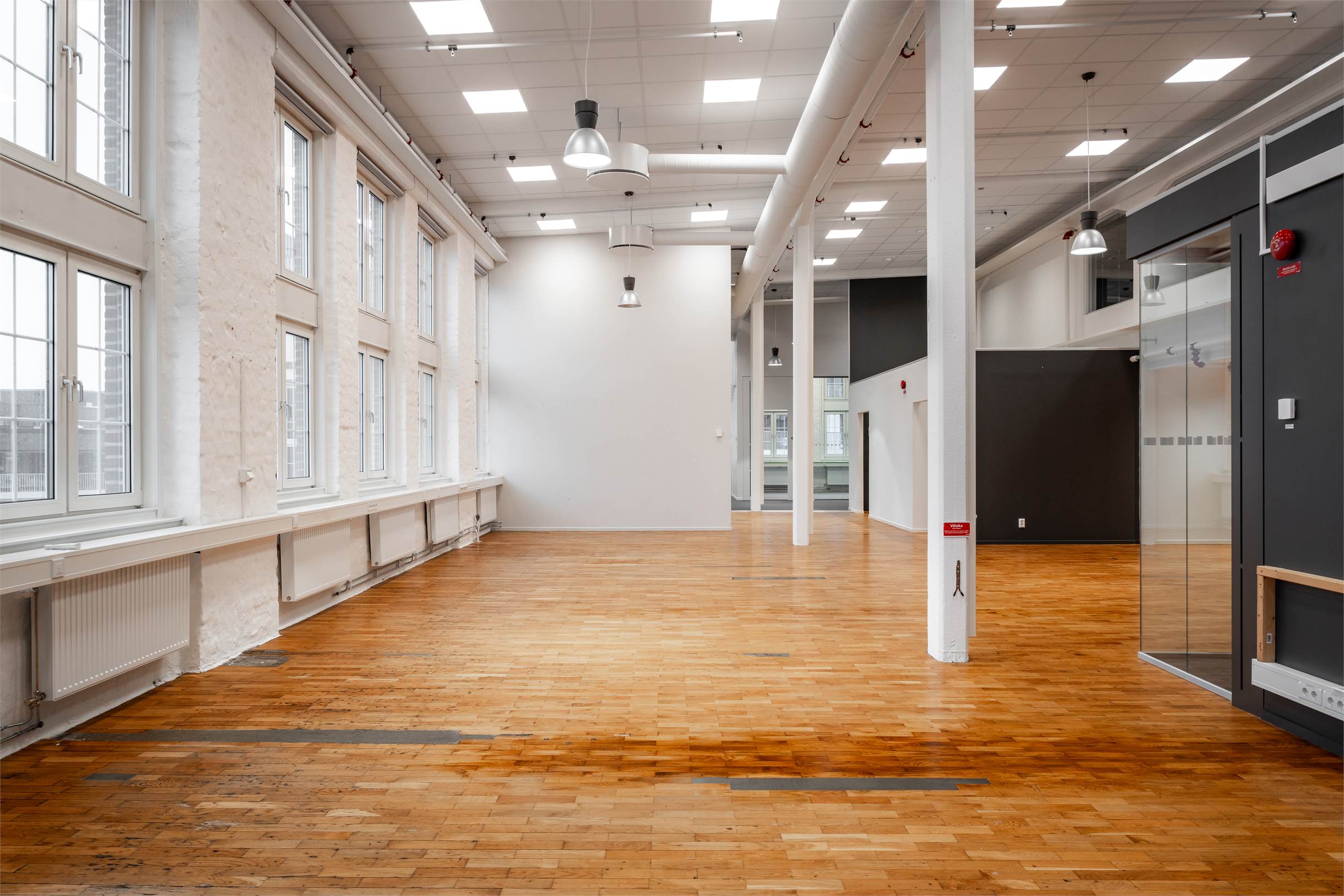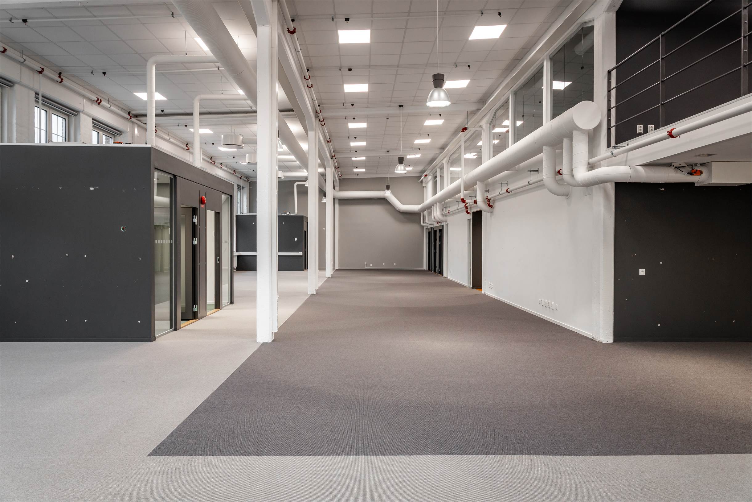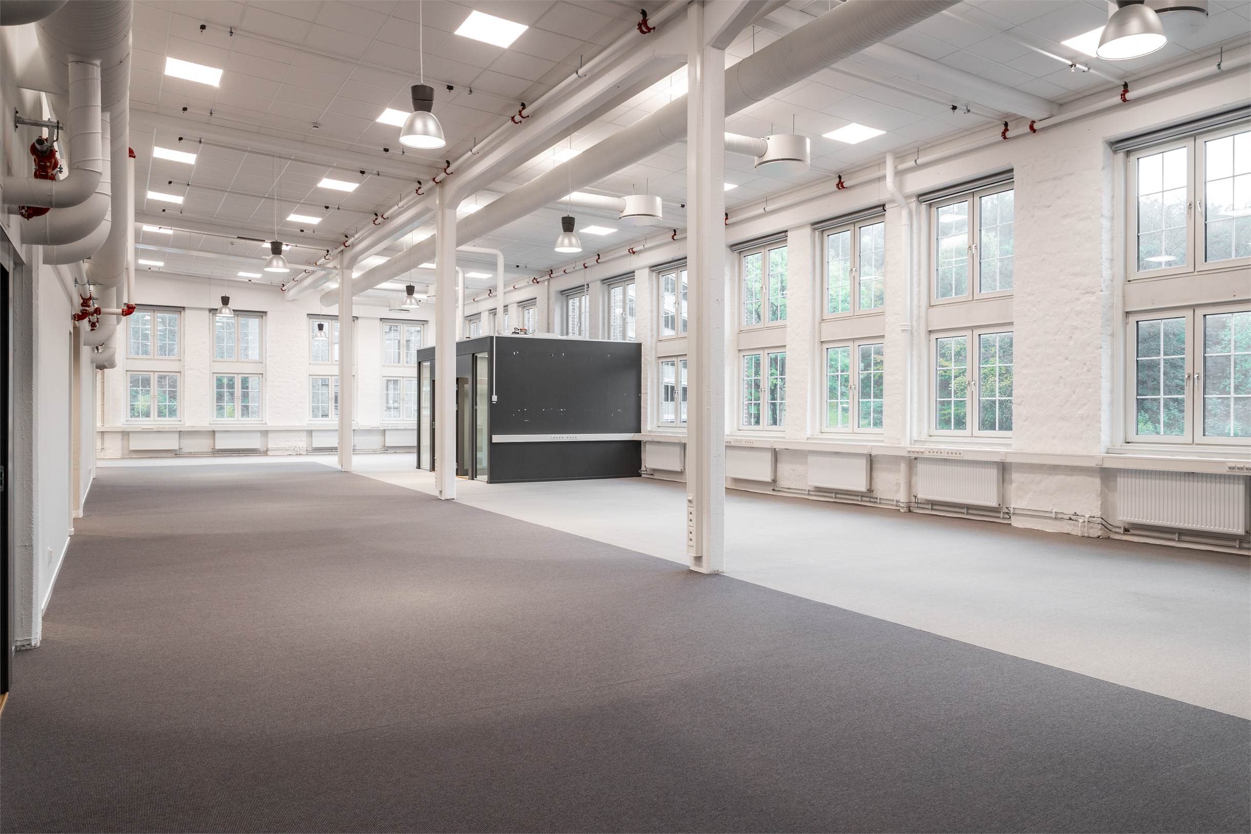 Lokalen har en planlösning med entresolplan i mitten. De varierande ytorna gör det möjligt att kombinera stora öppna arbetsytor, kontor, mötesrum och sociala zoner, perfekt för företag som vill skapa något eget och särskilja sig.