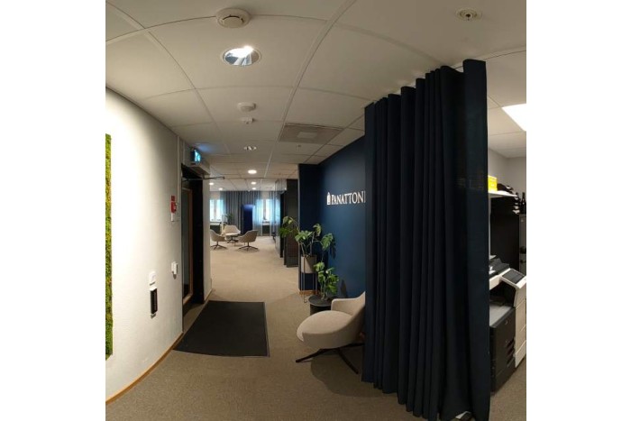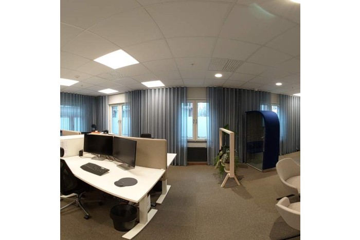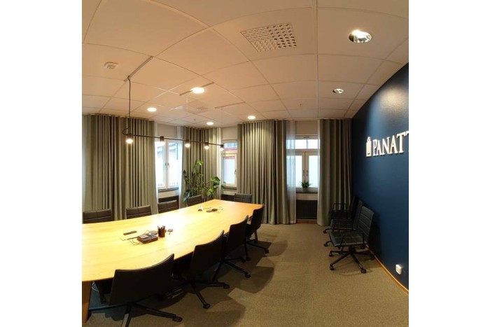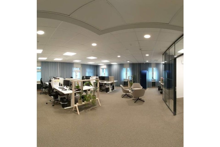 I huvudsak öppen planlösning med två mötesrum. Få en 360° rundvandring genom att klistra in länken i sökfältet på din web-läsare: