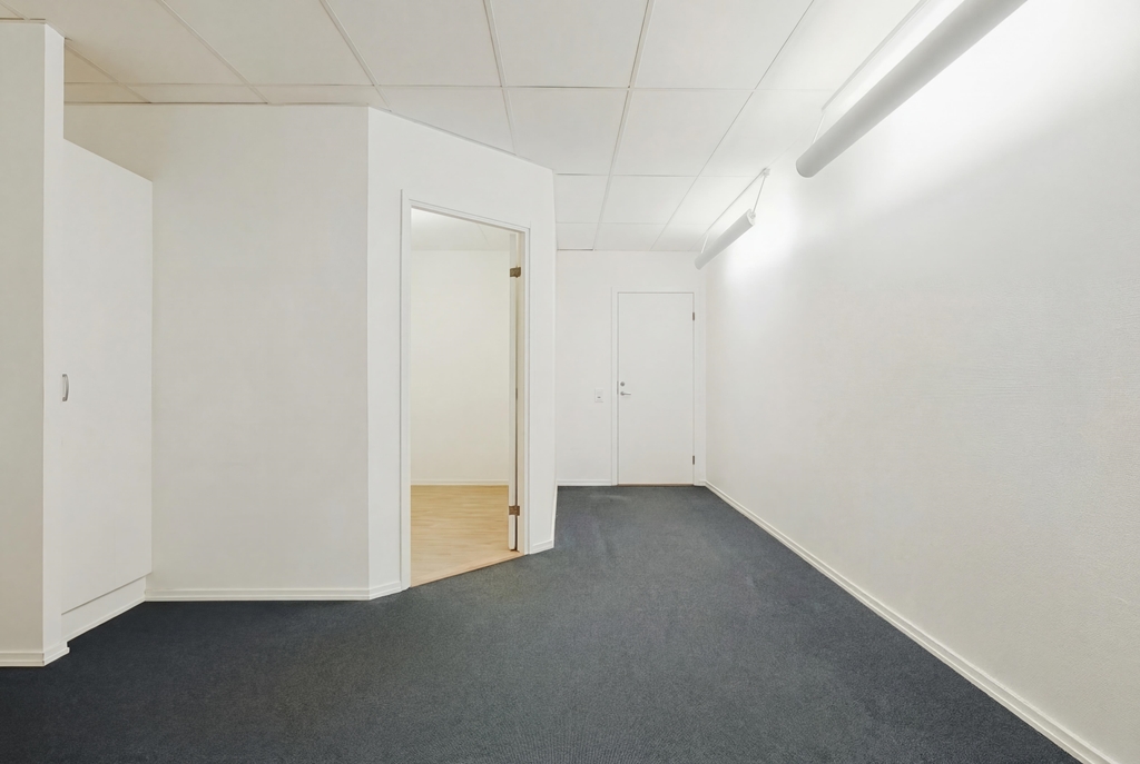 Lokalen har 2 kontor, WC med dusch samt pentry med plats för matbord. Därtill finns också ett rymligt lager med port.