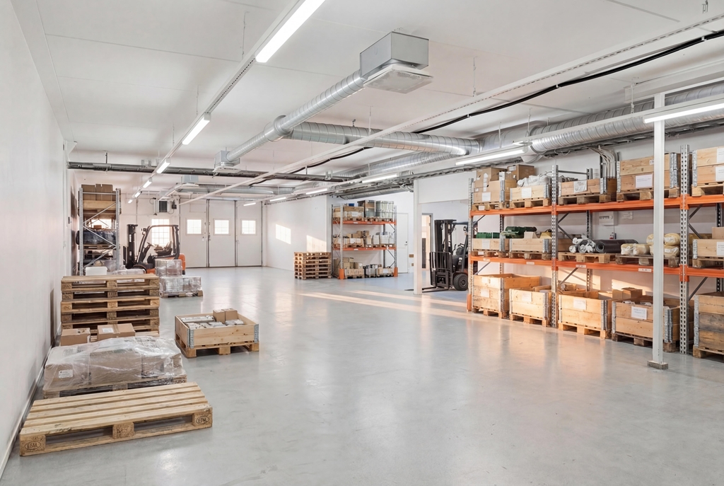 En bra lagerlokal med pentry, WC och förråd. Lastningsport finns.