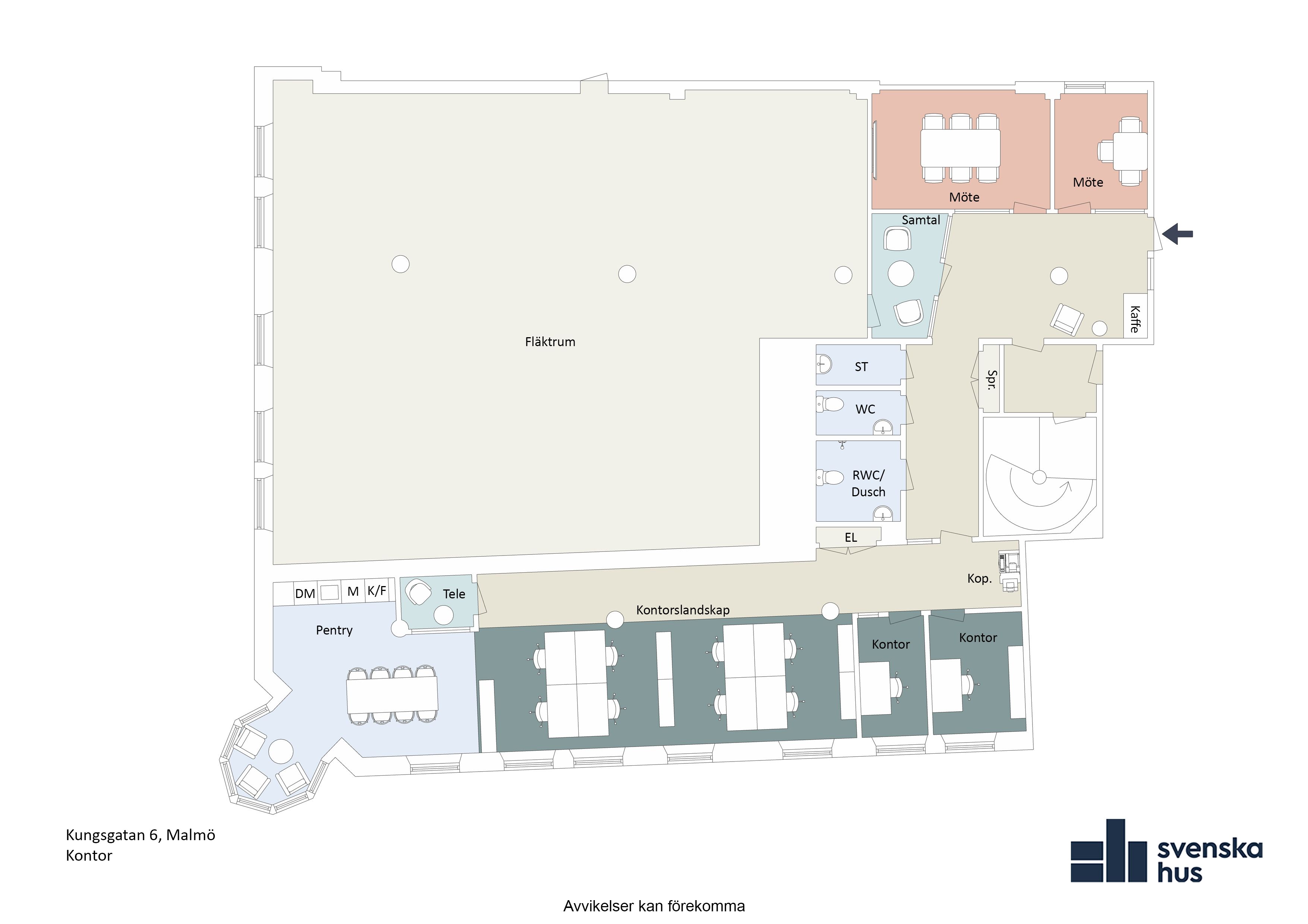 Planlösningen erbjuder två separata kontor med dörr samt ett öppet kontorslandskap som skapa flexibilitet för olika arbetsformer. Det fullt utrustade köket från Ballingslöv har diskmaskin, mikro, kyl och frys - perfekt för både vardag och representation. Lokalen innehar även två toaletter, en mindre och en HWC med dusch samt ett förråd för städ med utslagsback. Det finns två mötes rum att tillgå samt två samtalsrum.
