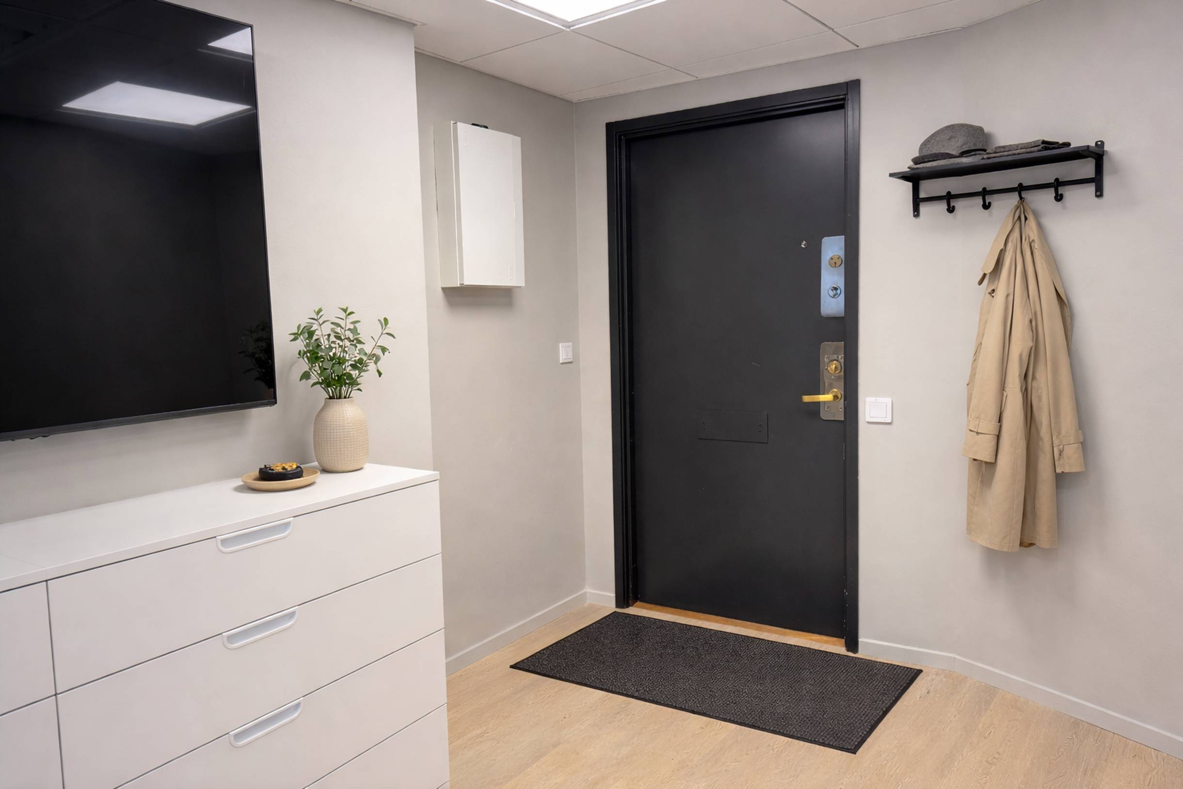 I området finns också all tänkbar service nära till hands. Mataffärer, apotek och specialbutiker ligger på bekvämt avstånd, vilket gör vardagssysslorna både smidiga och tidseffektiva. För den som vill ta en paus från kontoret eller få lite frisk luft ligger promenadstråket längs Stenpiren med utsikt över vattnet nära.