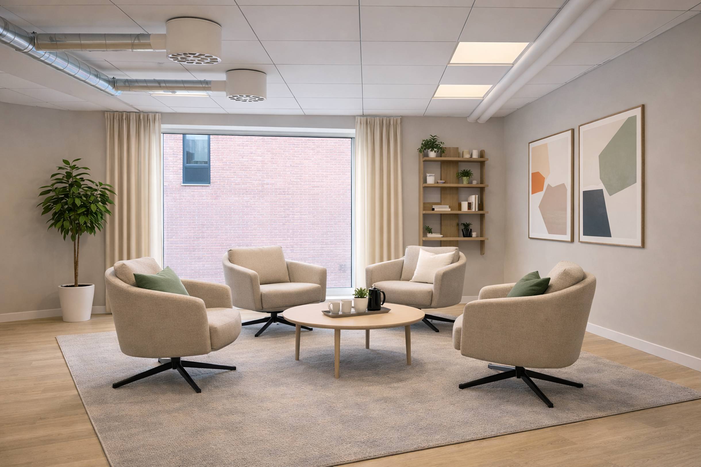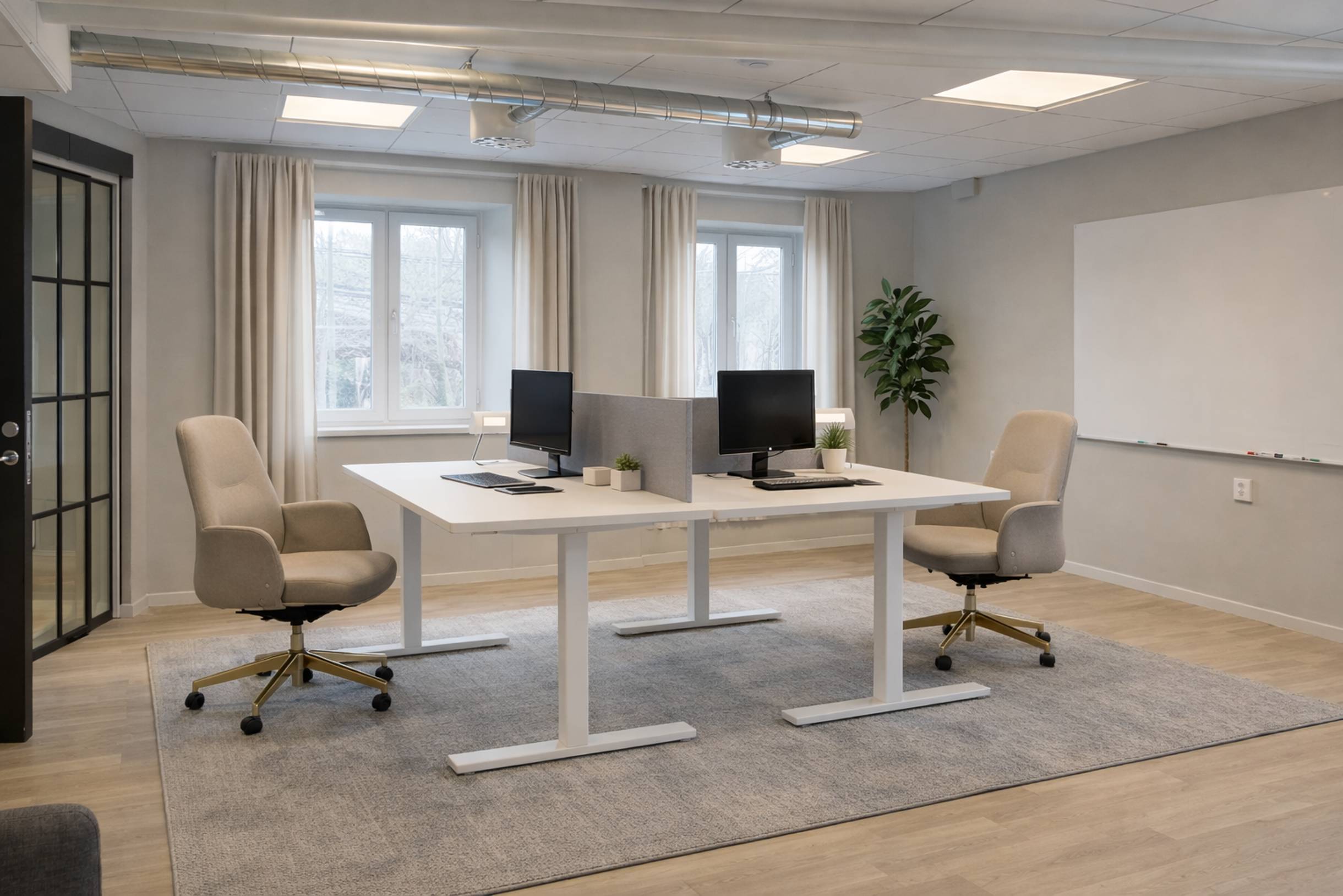 I den här kontorslokalen möts du av ett ljust, öppet och modernt kontorslandskap. De generösa fönstren släpper in rikligt med naturligt ljus och ger en härlig atmosfär.