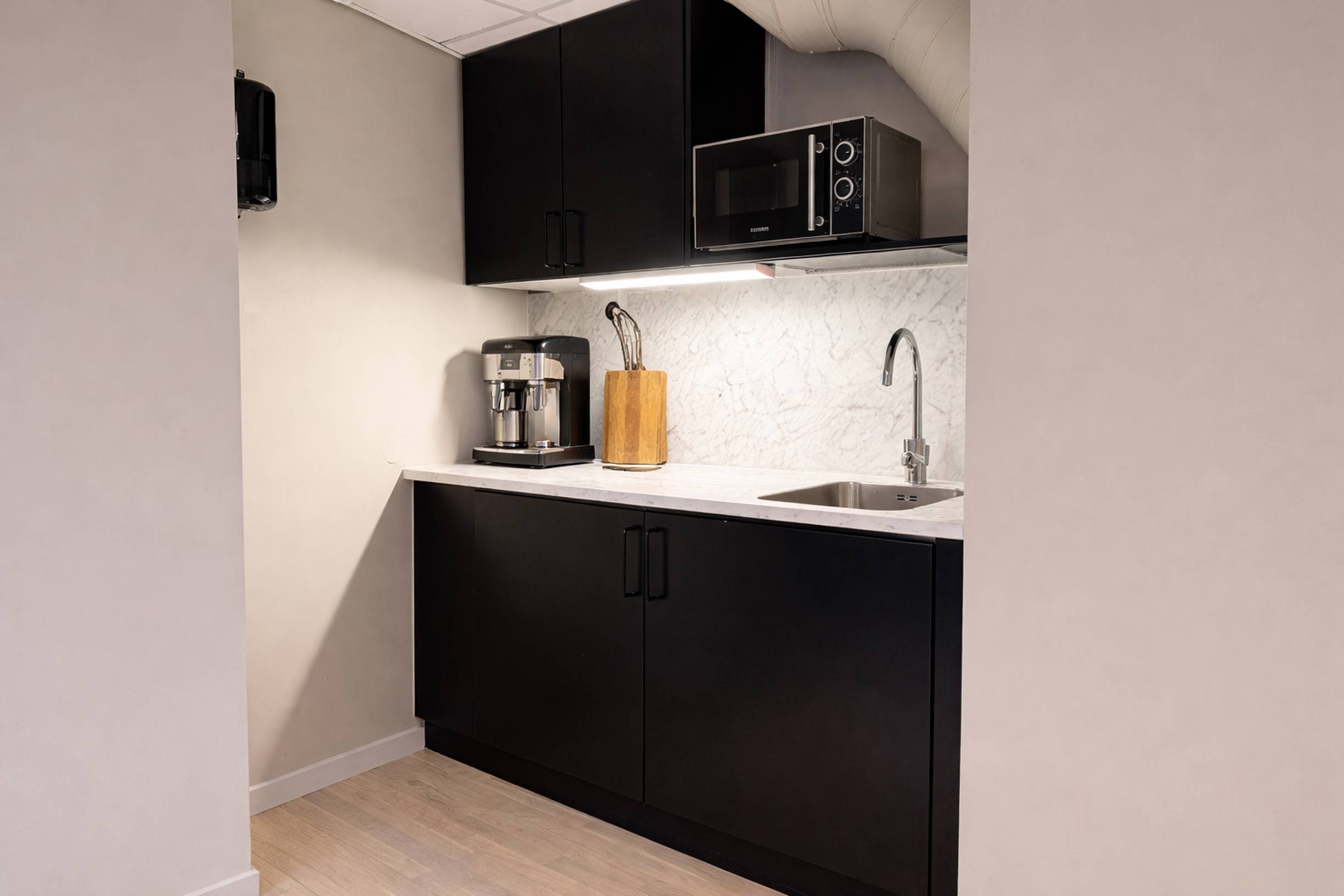 Här finns även ett mötesrum samt pentry med matplats och WC