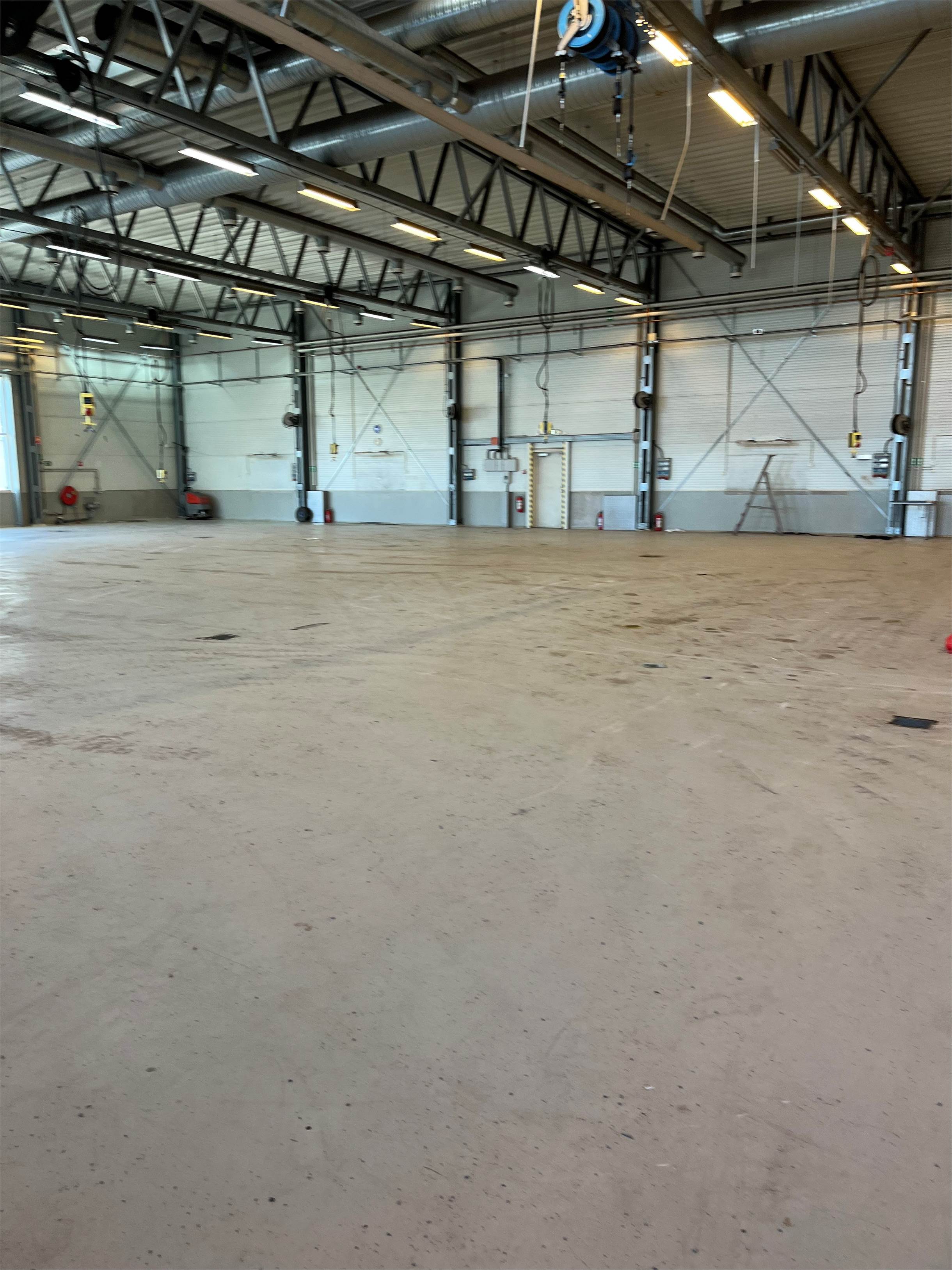 Verkstad 1 är 1118 kvm fördelat på 925 kvm nere och 193 kvm entresolplan. Byggnaden har fem markportarportar, nedre plan har en öppen planlösning och ca 7-8 meter i takhöjd.Här finns även oljeavskiljare. På nedre plan finns även kontor och pentry och WC. Övre plan är 193 kvm och här finns lager samt omklädningsrum, dusch och WC.