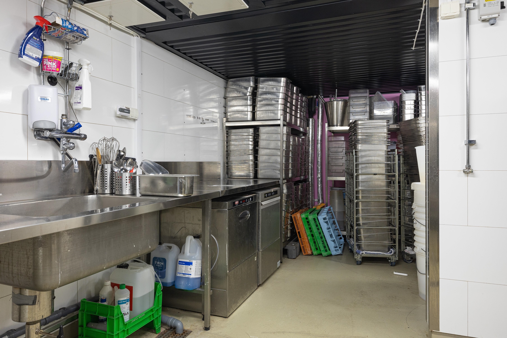 -Fettavskiljare och golvbrunn finns
