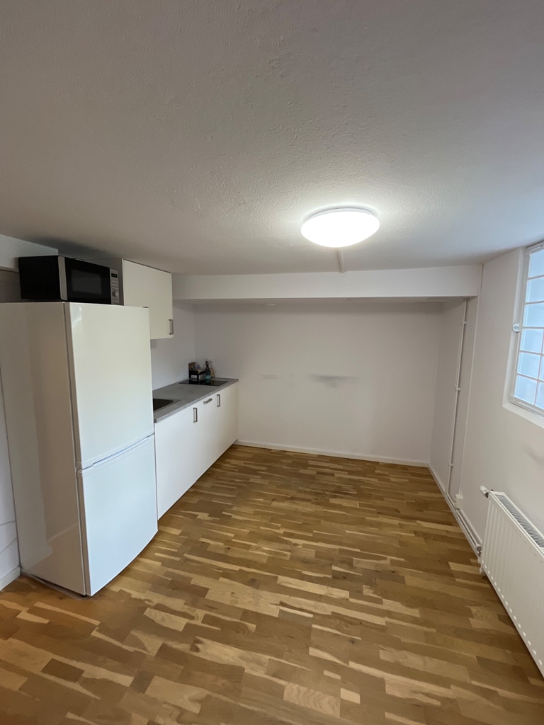 Egen entré en trappa ned i bostadshus. Lager eller showroom med separat kök/kontorsdel och fräsch dusch/WC.