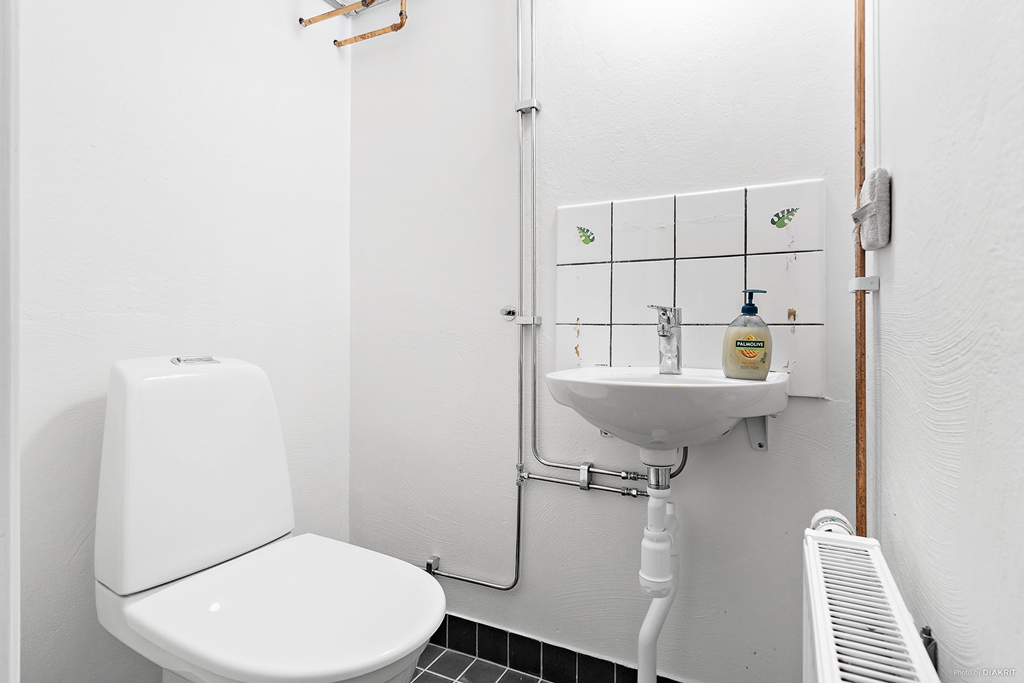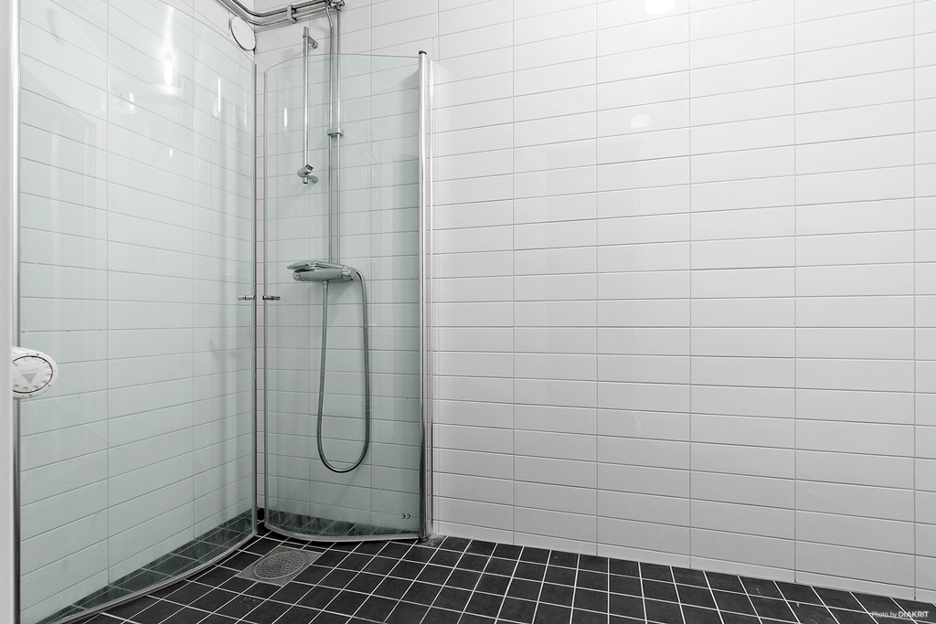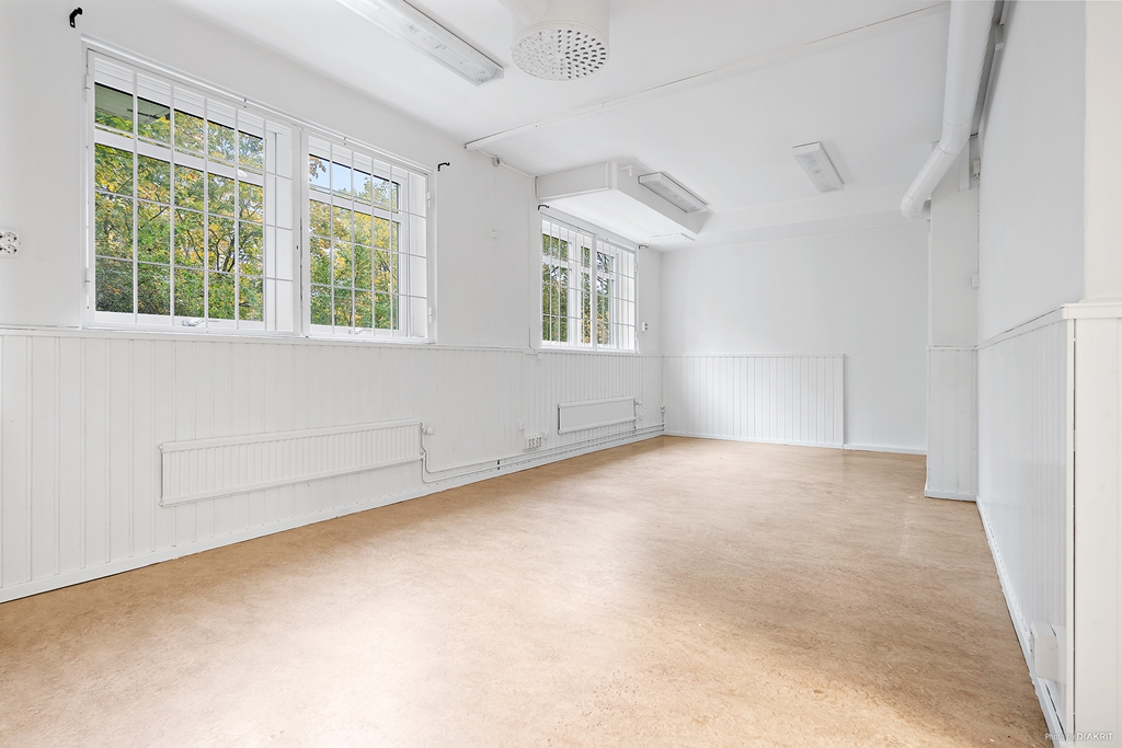 Lokalen är välplanerad och består av tre rum, tre förråd, toalett, dusch och ett pentry med handfat, kyl och kokplattor. Det finns även möjlighet att installera egen tvättmaskin, vilket gör lokalen extra praktisk för verksamheter med behov av enklare hantering av textilier eller rengöring.