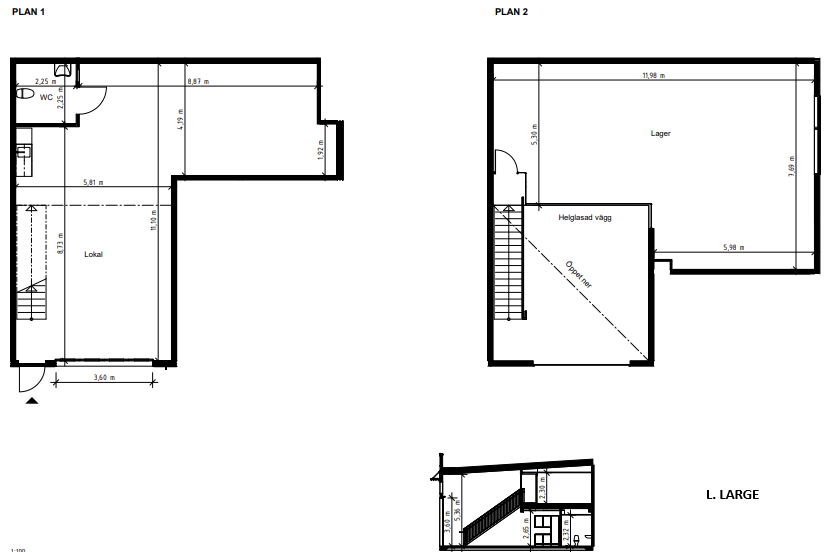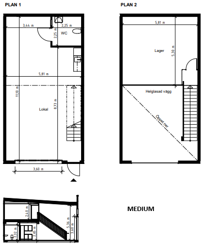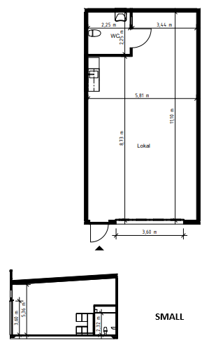 Vår lokal i storlek small, medium och large har vikportar, entrédörr, pentry och WC samt en stor yta som kan användas som lager eller lager kombinerat med kontor. Medium och large har även entrésolplan. Lokalen är fullt anpassningsbar.