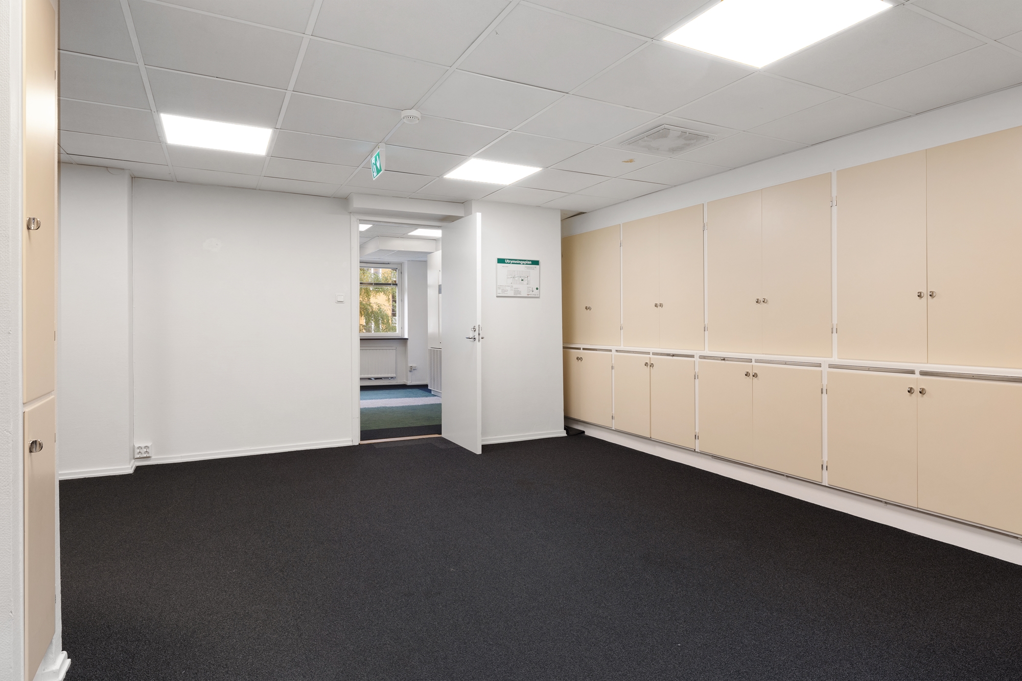 I dgasläget rumsindelad, men på grund av att det är mycket "lättväggar" går den att öppna upp rejält. Det finns tillgång till två pentryn, tre WC och en dusch.