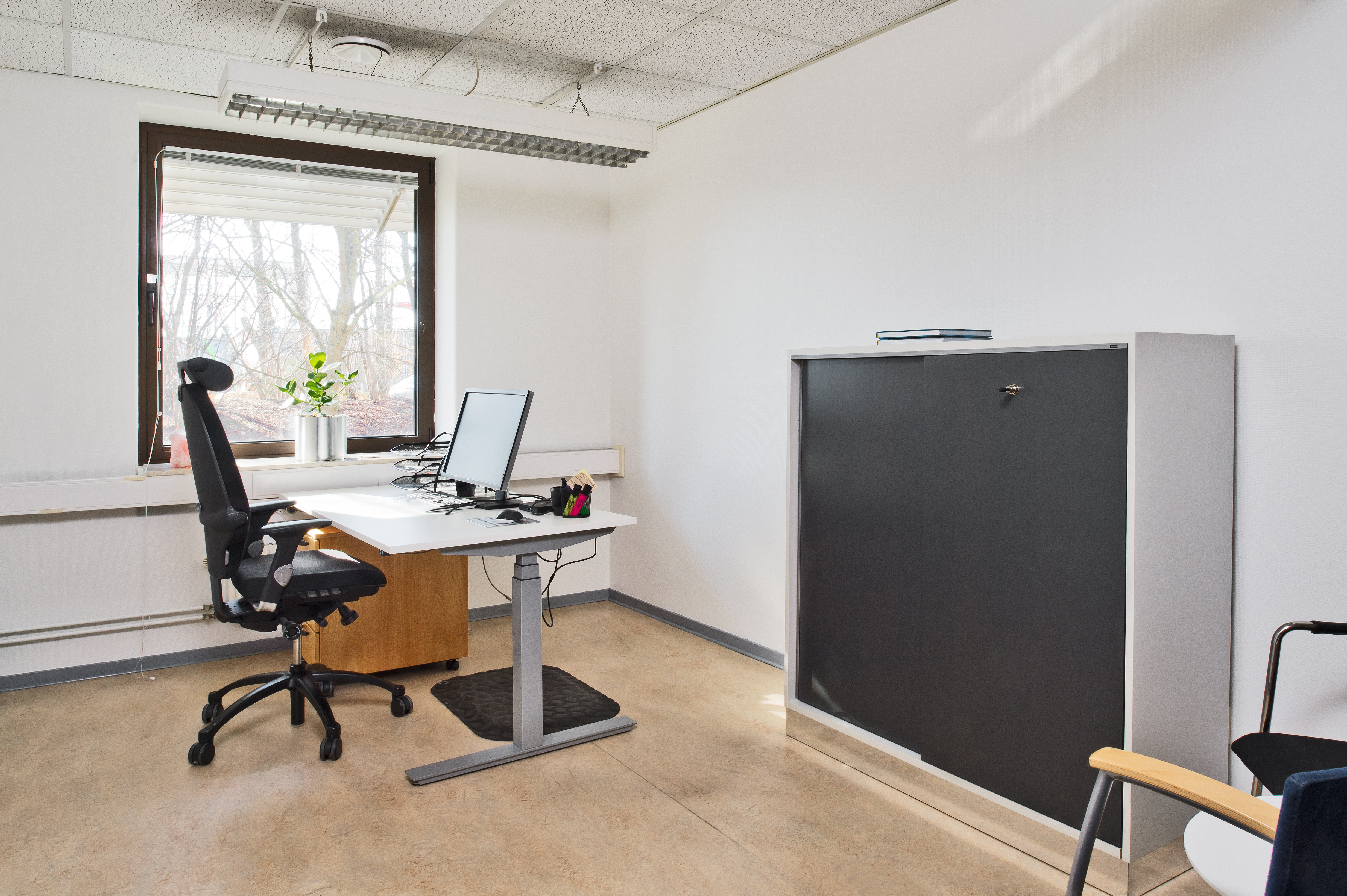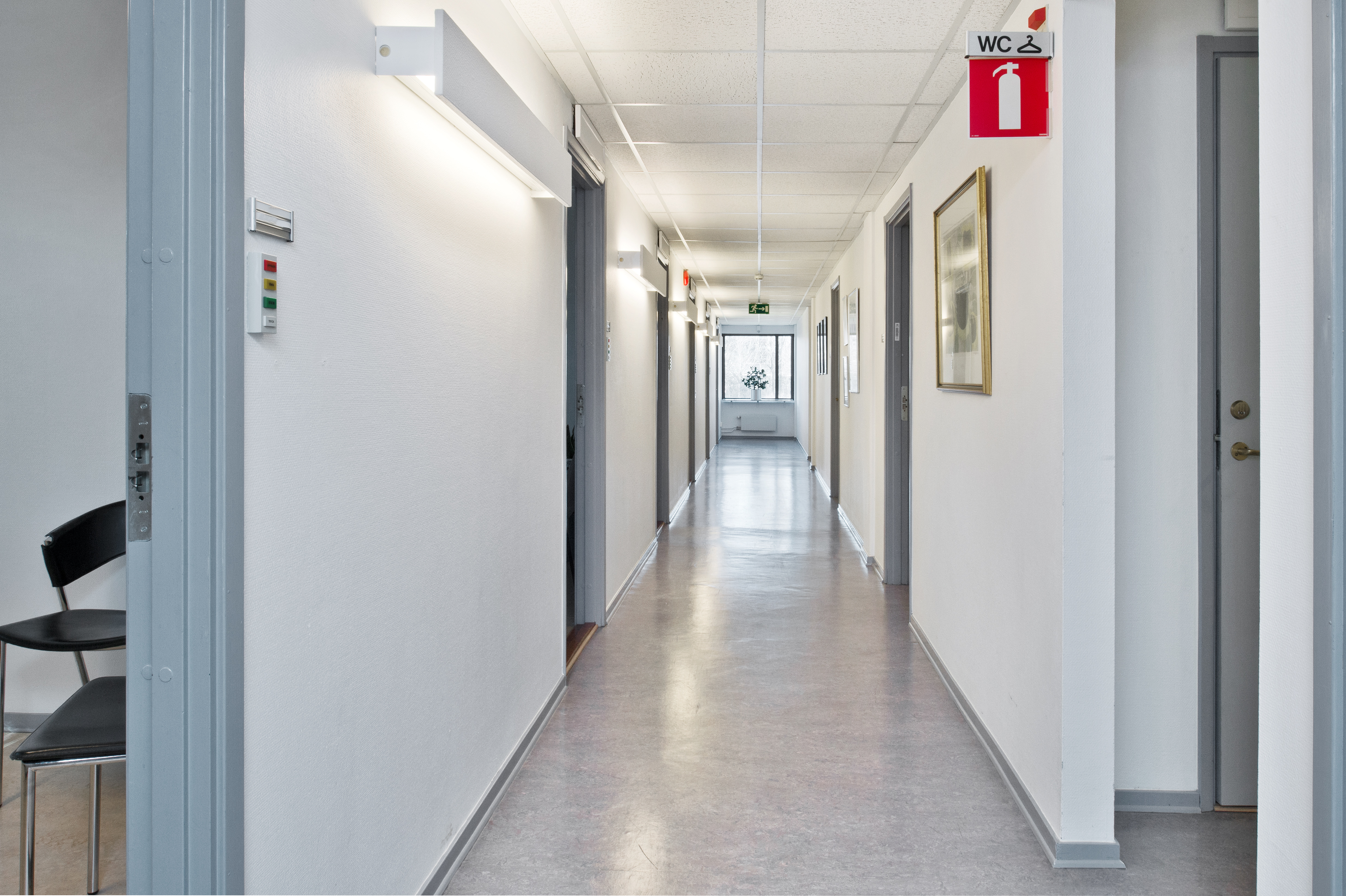 Trevlig och flexibel fastighet med en kombination av kontor, labb- och lätt industriverksamhet. Byggnaden omfattar ca 2 324 kvm kontor/lab i tre plan samt ca 716 kvm lager i källaren. Lokalerna kan anpassas efter verksamhetens behov. Fastigheten passar särskilt bra för bolag inom exempelvis medtech, life science, teknikutveckling eller annan verksamhet som behöver en kombination av kontor, labb och lätt produktion. Byggnaden är idag disponerad för en hyresgäst men kan enkelt delas upp per våningsplan för den som har behov av mindre ytor. Varje våningsplan omfattar cirka 770 kvm och binds samman av ett ljust, glasat trapphus. Mellan plan 1 och 2 finns även en interntrappa vid receptionsytan som skapar en luftig och representativ entrémiljö. Planlösningen består idag främst av kontorsrum i bra storlek, vilket lämpar sig väl för forskningsteam, utvecklingsavdelningar eller projektorganisationer. På plan tre finns även inslag av öppen planlösning (syns ej på bifogad ritning). Totalt finns möjlighet till upp till ca 30 rum per plan samt mötesrum och gemensamma funktioner. Detta motsvarar ungefär 90 arbetsplatser i rumsstruktur, och upp mot ca 150 arbetsplatser vid mer öppen planlösning. I lokalerna finns även större kök med generös pausyta. Källarplanet har full takhöjd och lämpar sig väl för lager, teknikrum, testmiljöer, labbrelaterade funktioner, omklädning eller personalytor. Här finns även goda möjligheter att skapa exempelvis personal- eller träningsutrymmen. Hiss finns i byggnaden och går även ner till källaren. Fastigheten har ny ventilationsanläggning vilket skapar goda förutsättningar för ett bra inomhusklimat och verksamheter med högre tekniska krav. Läget är särskilt fördelaktigt för bilburen verksamhet. Fastigheten erbjuder fri parkering, är inhägnad och nås via automatisk grind. Stora möjligheter för uppställningsytor finns på fastigheten. Laddstolpar för elbil finns installerade.
