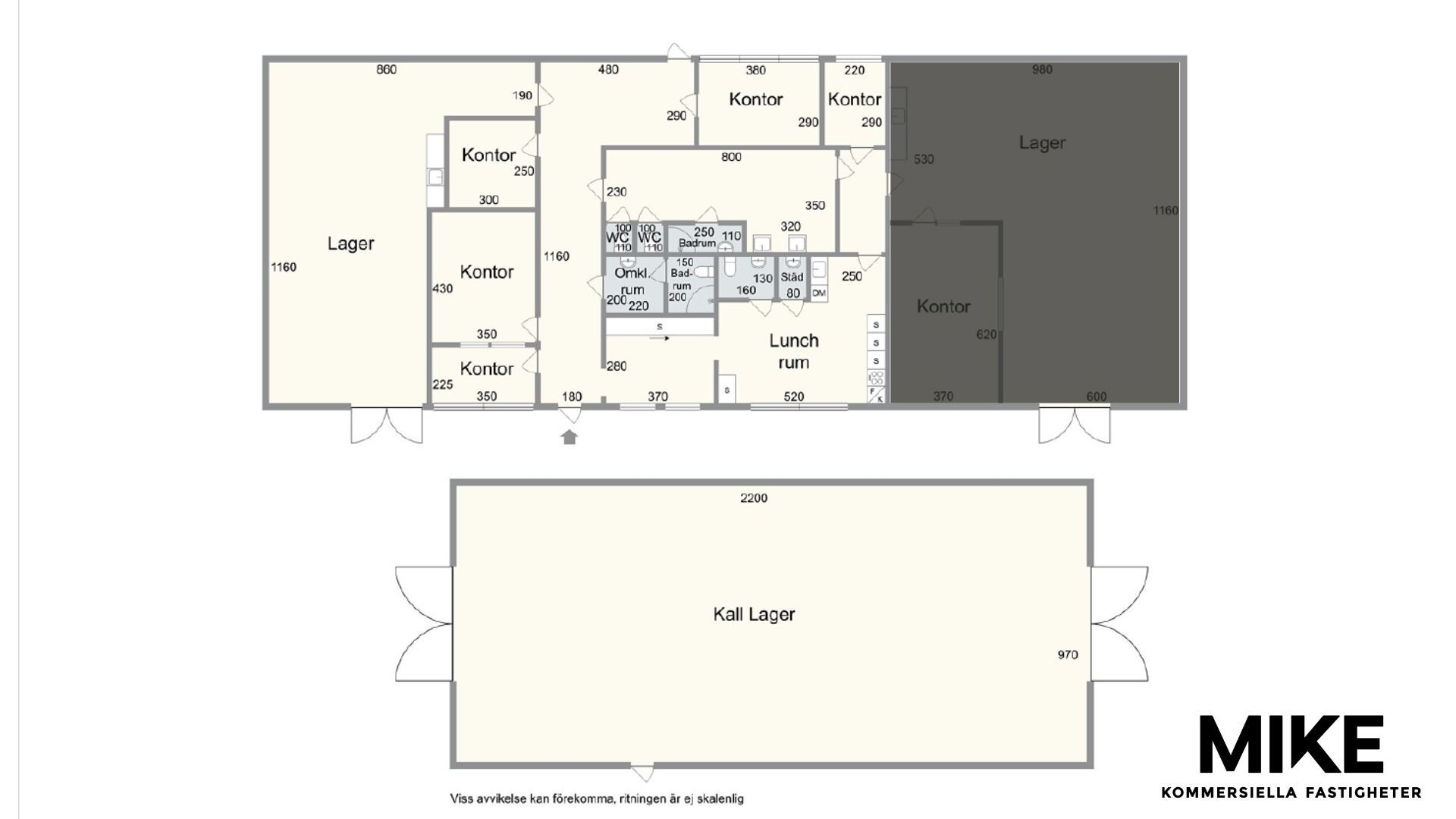 Industrifastighet med attraktivt läge i Varla/Hede industriområde i Kungsbacka. Här erbjuds en flexibel kombilokal med både kontor och lager om cirka 225 kvm, kompletterat med ett kallager om cirka 220 kvm. Lokalen passar utmärkt för verksamheter som söker en praktisk lösning med närhet mellan administration och lagerhållning. Lagerytorna är lättillgängliga och nås via en port om cirka 3,20 meter i höjd och 2,95 meter i bredd, vilket underlättar smidig in- och utlastning. I lokalen finns även omklädningsrum, vilket ger extra funktionalitet för verksamheter med personal på plats. Kontorsdelen erbjuder en trivsam arbetsmiljö med goda möjligheter för administrativa arbetsuppgifter, möten och planering. Fastigheten har generösa uppställningsytor samt gott om parkeringsmöjligheter i direkt anslutning, vilket underlättar för både personal och besökare. Fasaden kommer att målas om och det kommer att sättas in en ny port in till lagret. Ett utmärkt tillfälle för företag som vill etablera sig i ett väletablerat industriområde med bra kommunikationer i Varla/Hede, Kungsbacka.