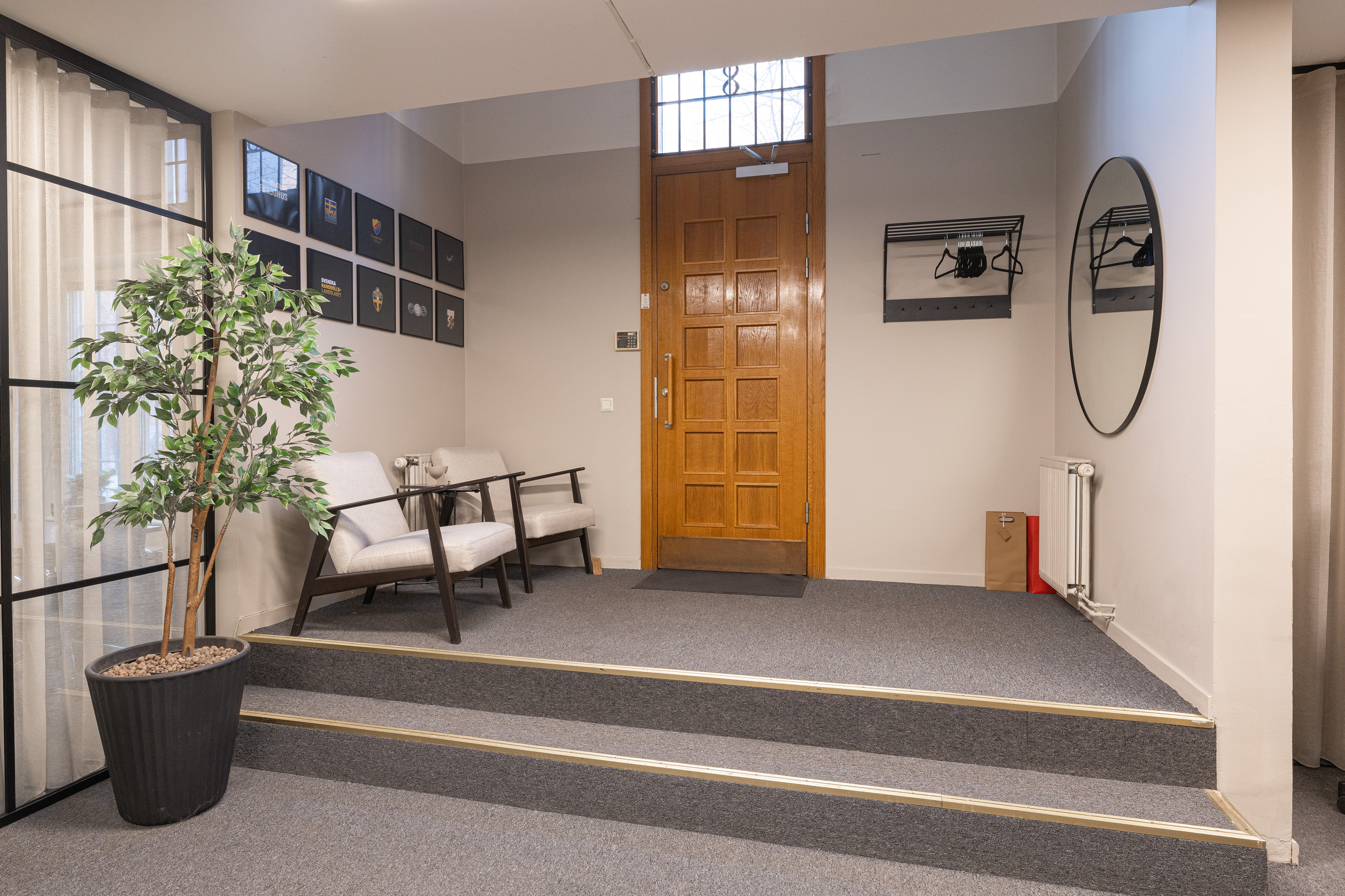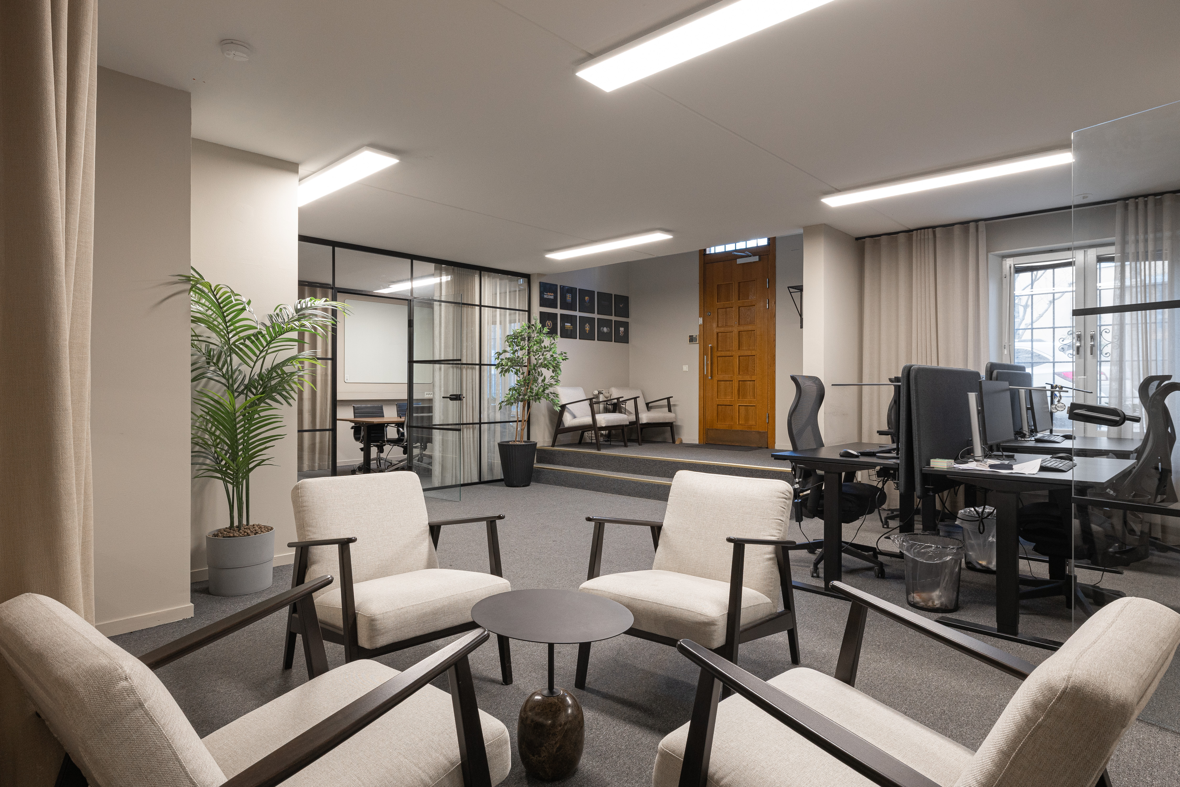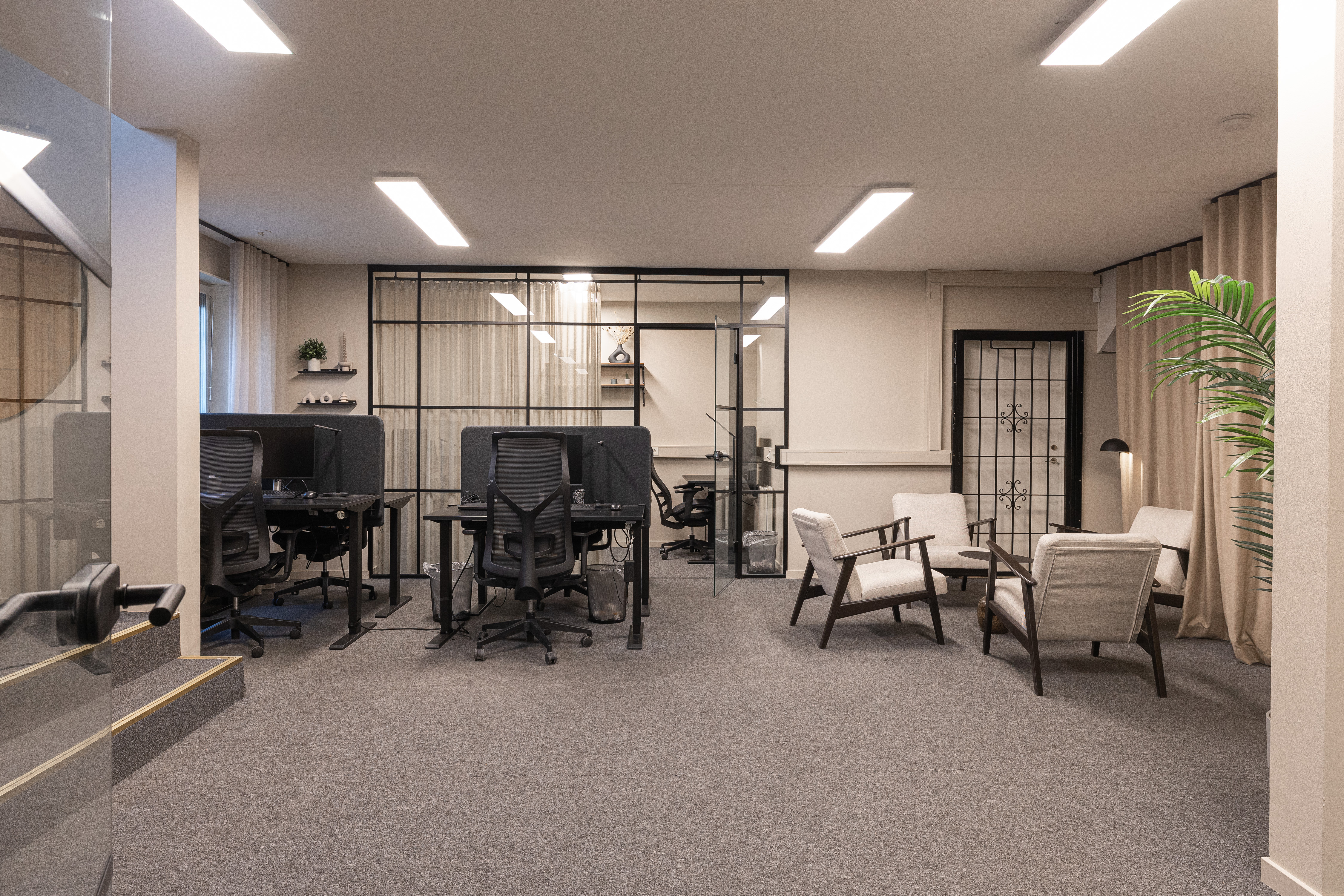Renoverad 2024 och utrustad med ett konferensrum samt separata mötesrum, vilket skapar goda möjligheter för både gemensamt och enskilt arbete.