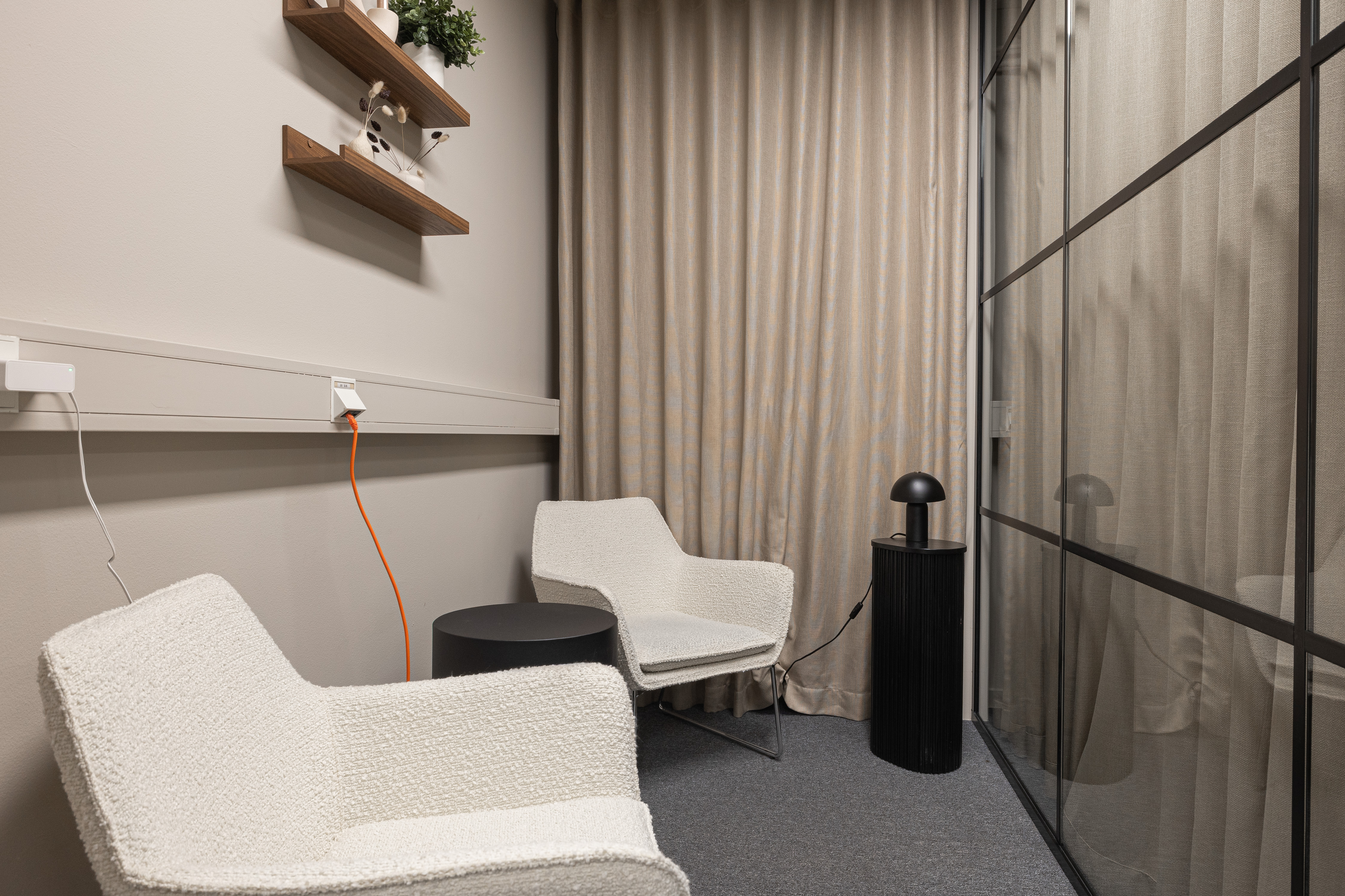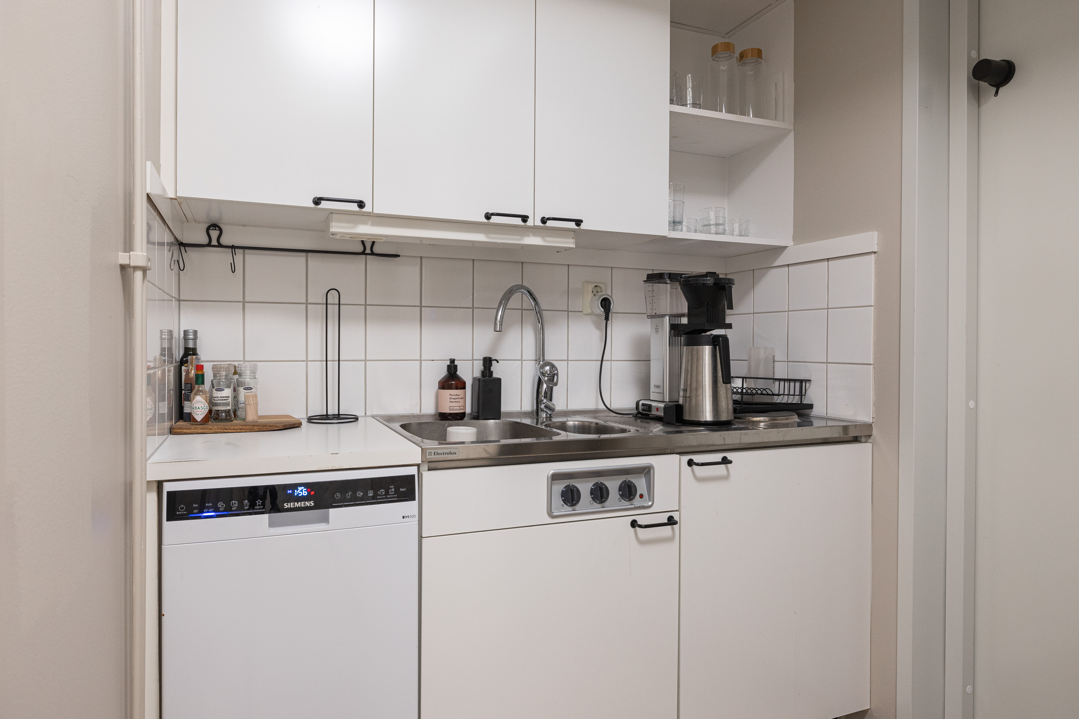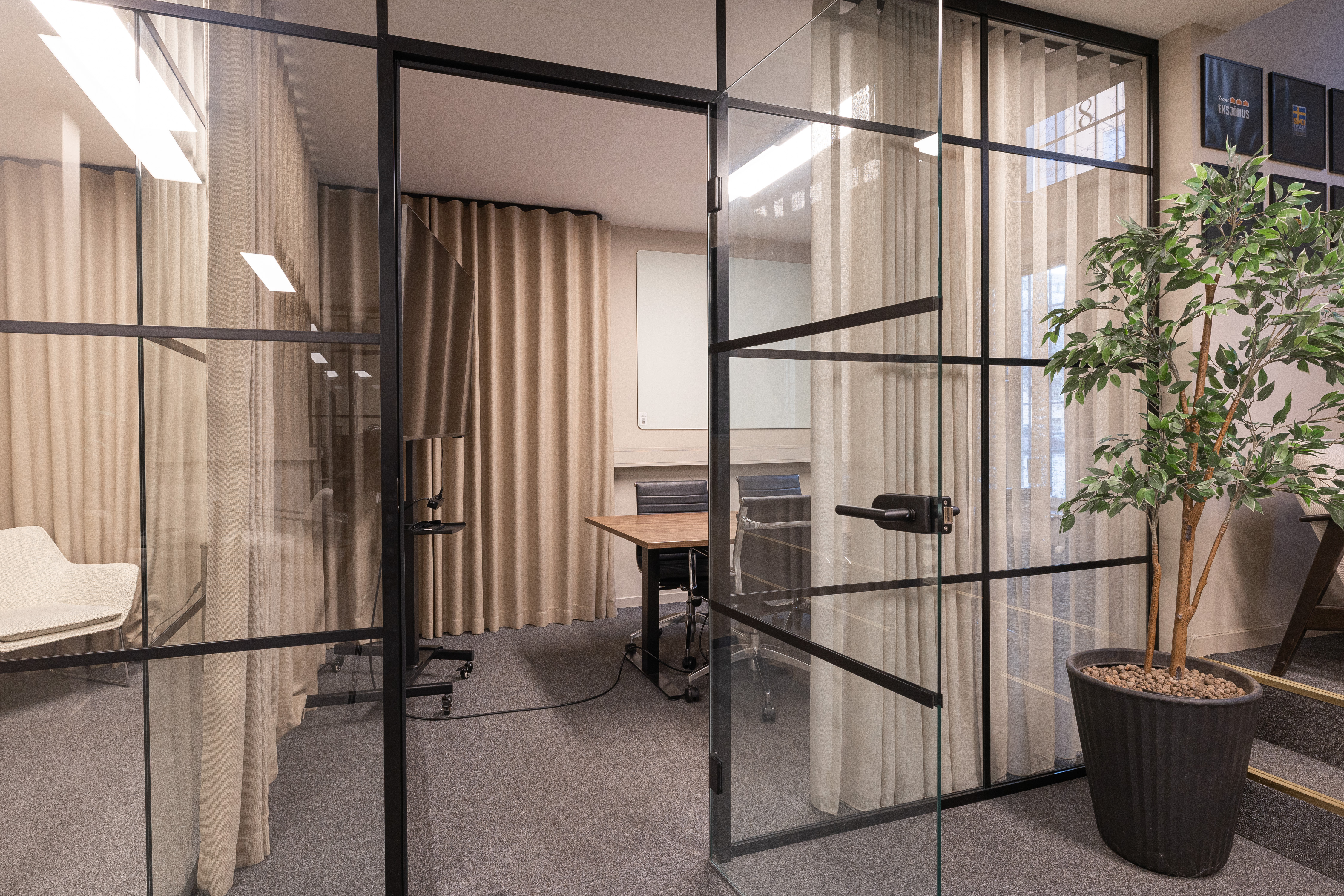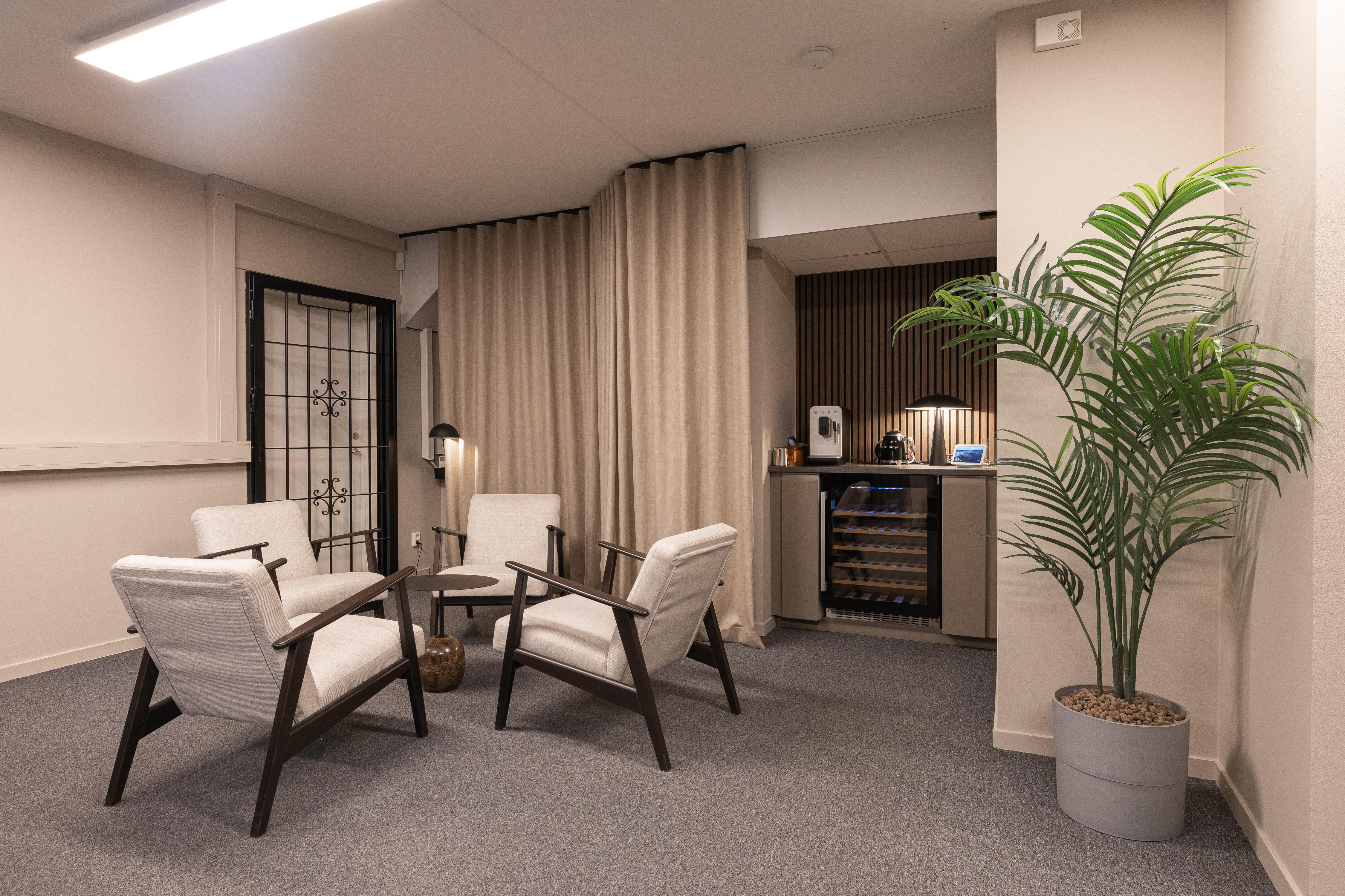 Renoverad 2024 och utrustad med ett konferensrum samt separata mötesrum, vilket skapar goda möjligheter för både gemensamt och enskilt arbete.