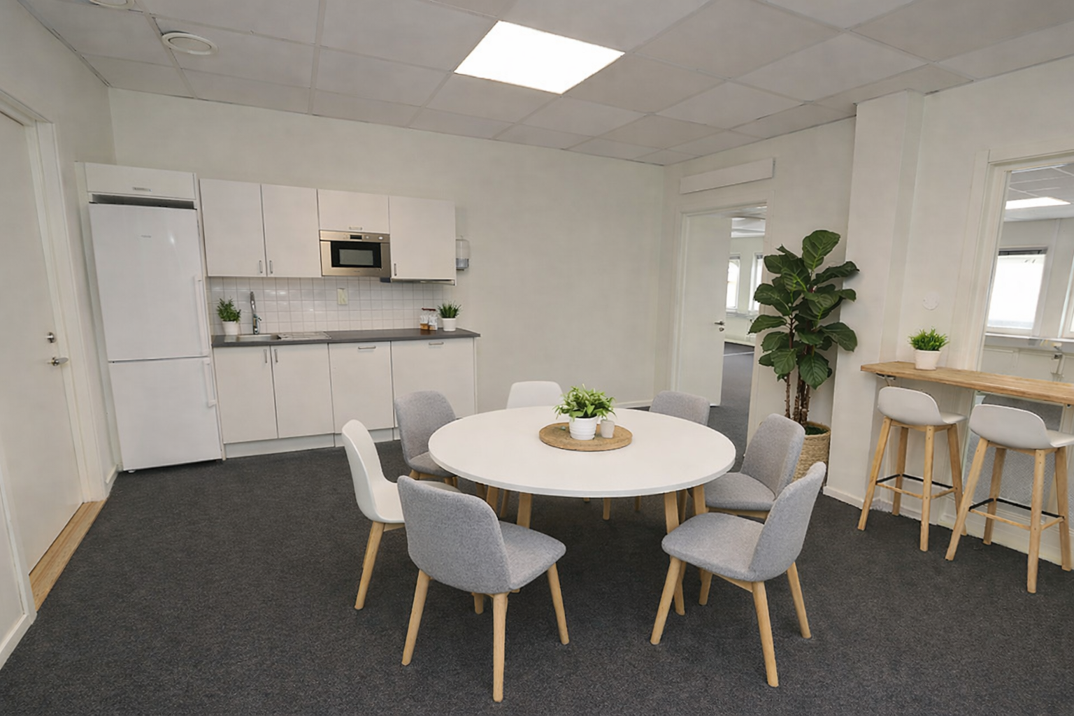 Ytskikten är fräscha med textilmattor och ljuddämpande undertak, vilket skapar en trivsam arbetsmiljö. Belysningen är bra och modern med nyinstallerade LED-plattor i såväl kontorsytor som konferensrum.