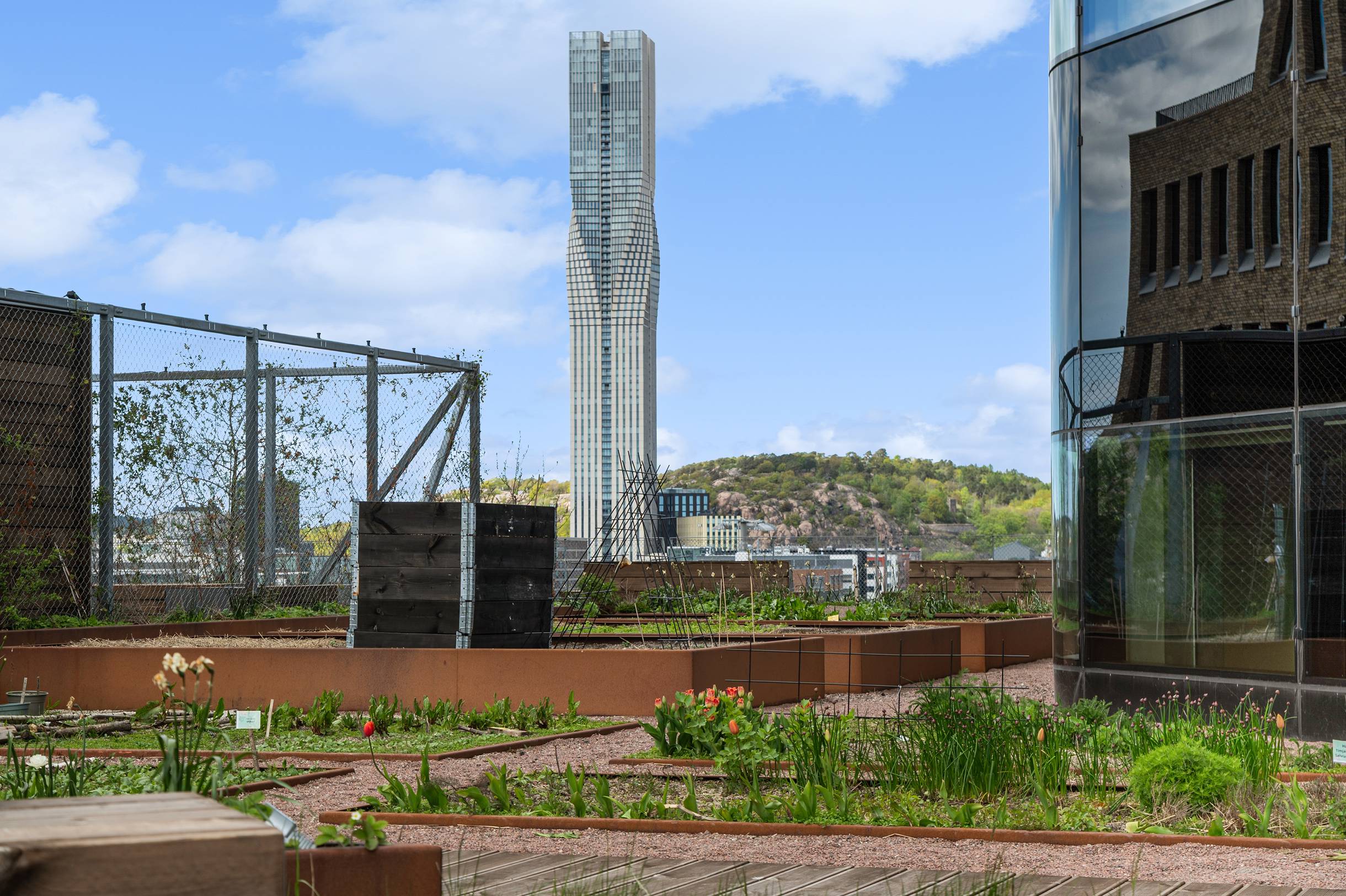 En verklig pärla är den gemensamma takterrassen på hela 1 200 kvadratmeter, som delas med grannbyggnaden Brick Studios. Takterrassen är en grön oas med soliga platser, pallkragar och odlingsspaljéer där du kan ta en paus i en naturnära miljö – mitt i stan. Dessutom finns en stadsbonde på plats som sköter om ett andelsjordbruk på taket, vilket ger hyresgästerna möjlighet att plocka med sig nyskördade grönsaker hem efter arbetsdagen.