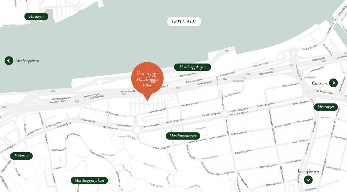 Masthuggskajen växer fram som en ny stadsdel vid älven - ett levande kvarter där arbete, möten och upplevelser möts. Här finns närhet till Järntorget, Linné och Majorna, med ett stort utbud av service, kultur och restauranger.