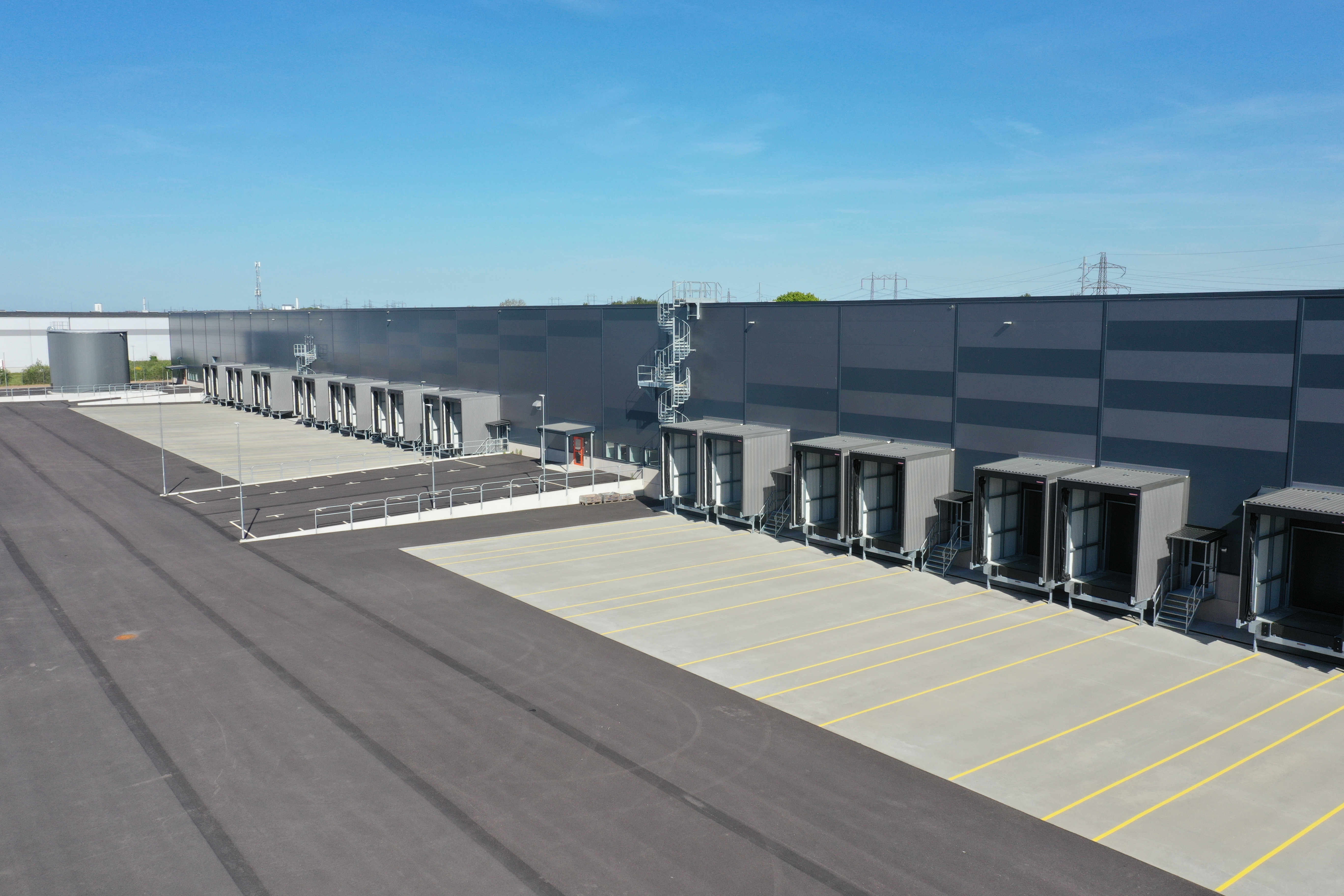 Körvägar och lastgård är dimensionerade för tung trafik och hantering av fordon upp till 25,5 meter. Parkering finns för personbilar. Lastgården är inhägnad.