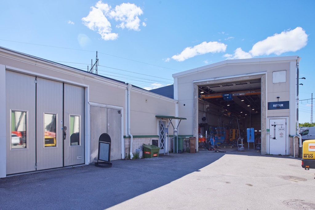Lokalerna är belägna i en egen byggnad, med mycket god takhöjd och ett flertal stora lastportar direkt mot gårdsplanen, vilken även kan användas för uppställning, och som medför mycket goda förutsättningar för effektiv logistik.