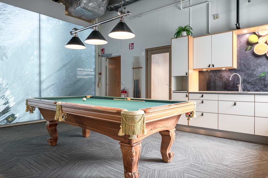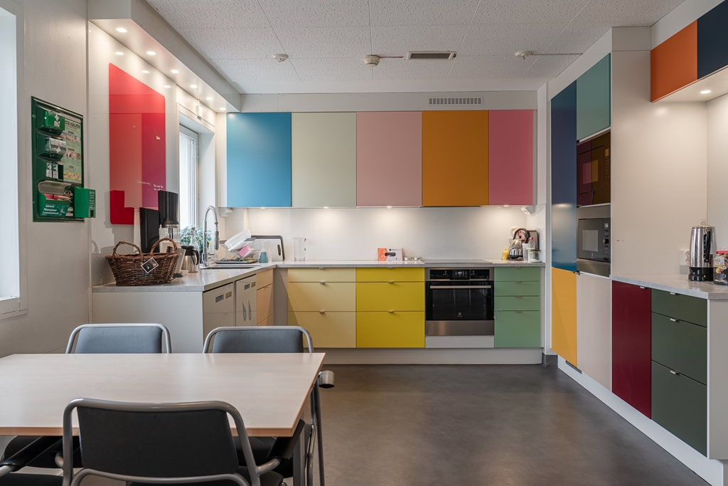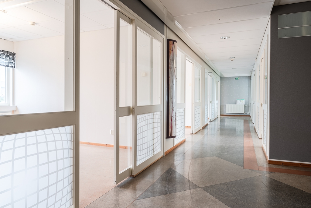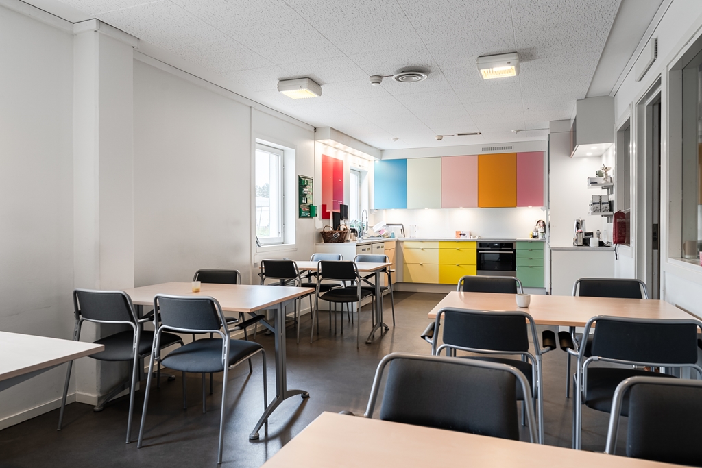 I direkt anslutning till ytorna finns fräscha gemensamma ytor med omklädningsrum, dusch, wc och kök med matrum som delas med fastighetens övriga hyresgäster. Utöver dessa ytor finns även separata kontorsytor om ca 220 kvm att hyra, i en tillbyggnad till fastigheten.