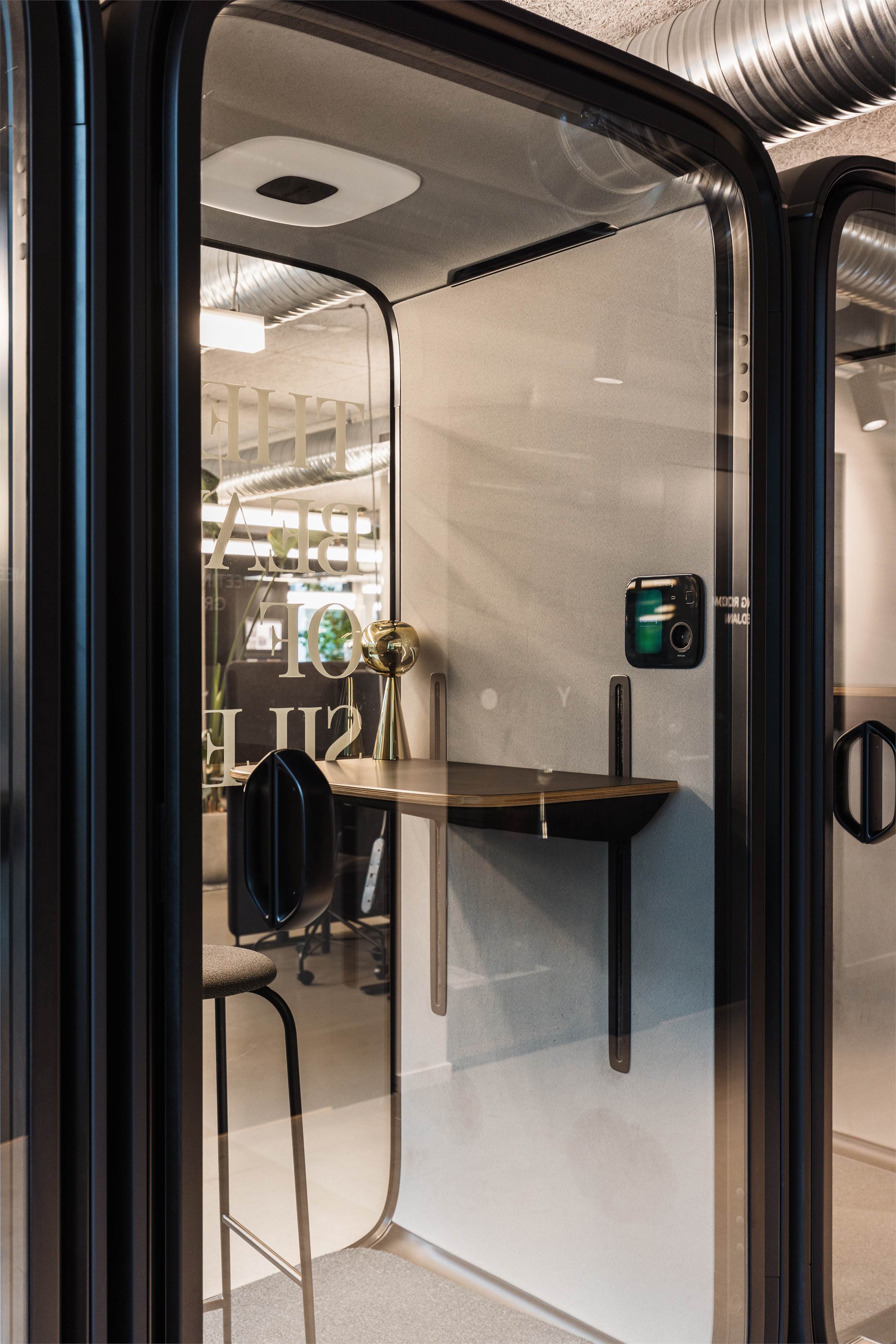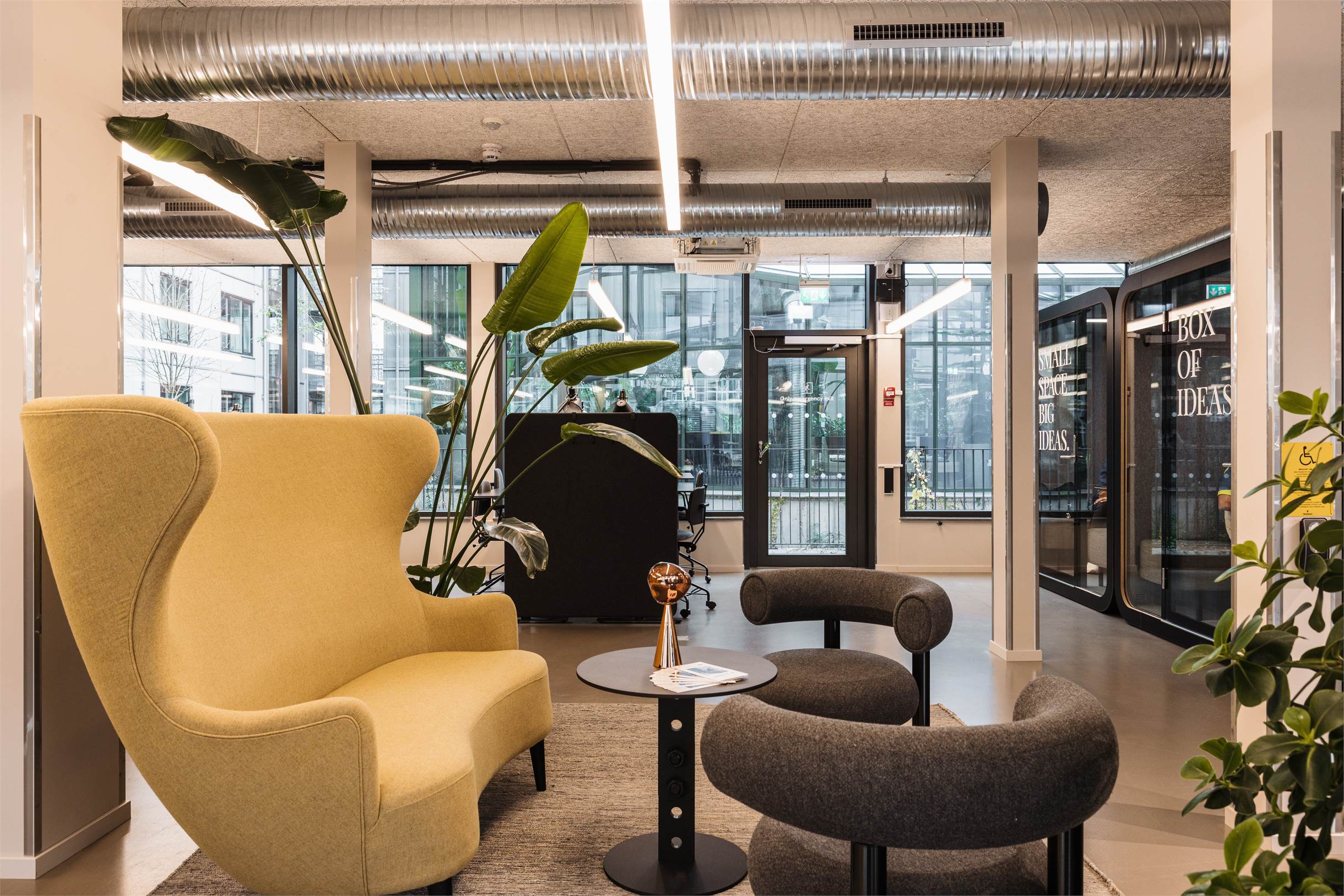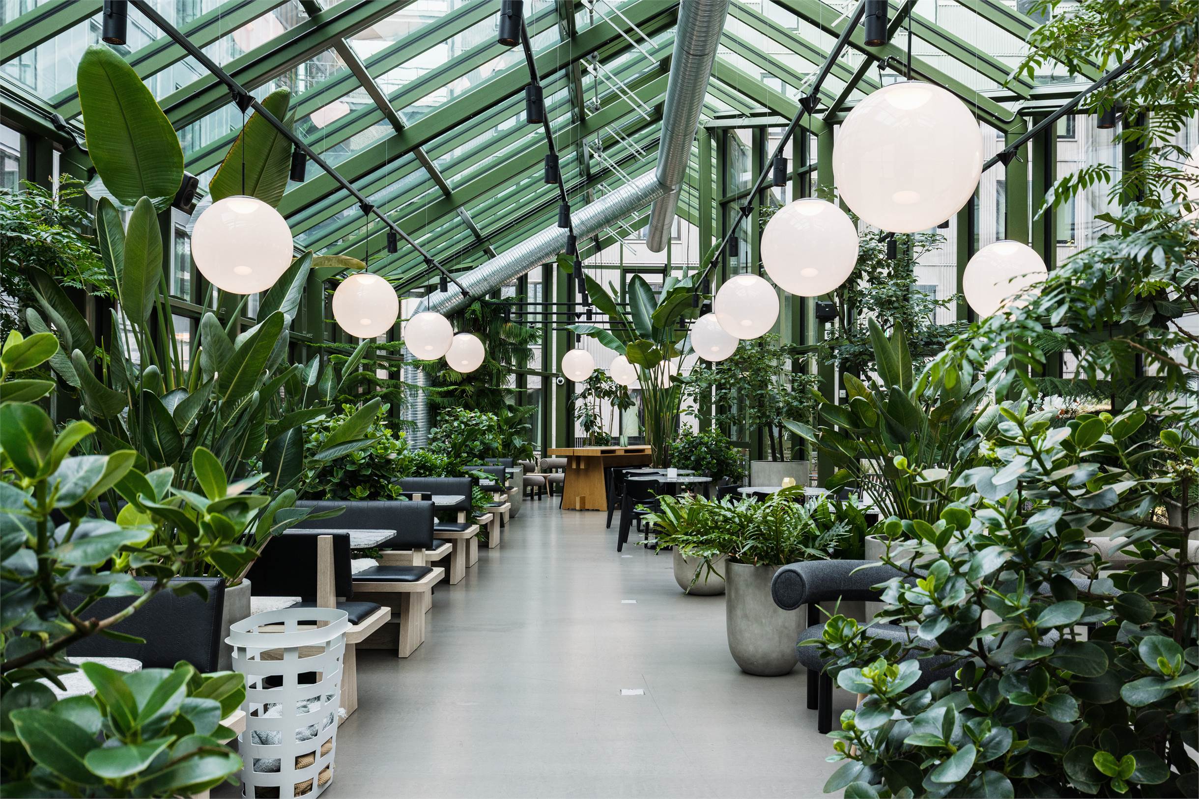 Kontoret erbjuder ett öppet landskap med flera mötesrum, gott om plats för arbetsstationer och sociala ytor, samt några telefonbås – en flexibel och samarbetsvänlig arbetsmiljö. Det gröna orangieriet är en hyrbar lokal vid särskilda tillfällen, lämplig för event eller andra tillställningar!
