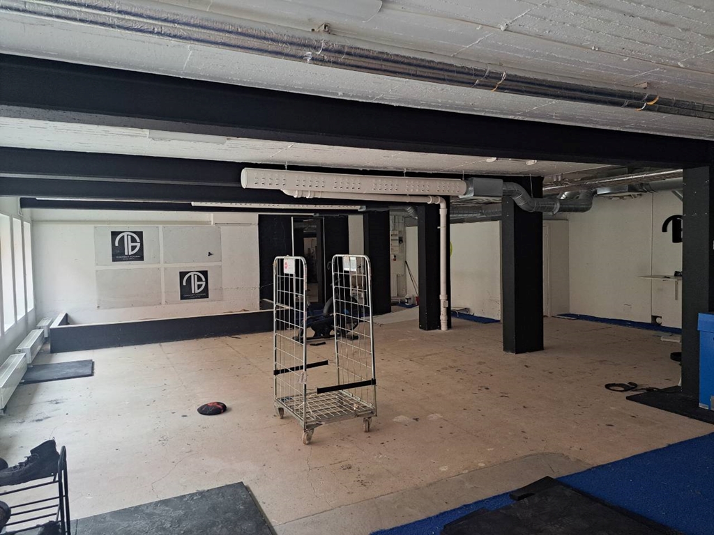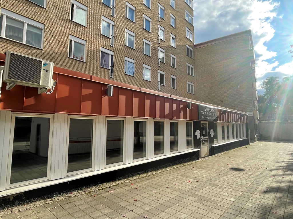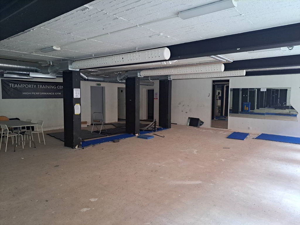 Lokalen har tidigare varit ett gym och har därför två omklädningsrum med tillhörande duschar och WC. Utöver det finns ett mindre pentry