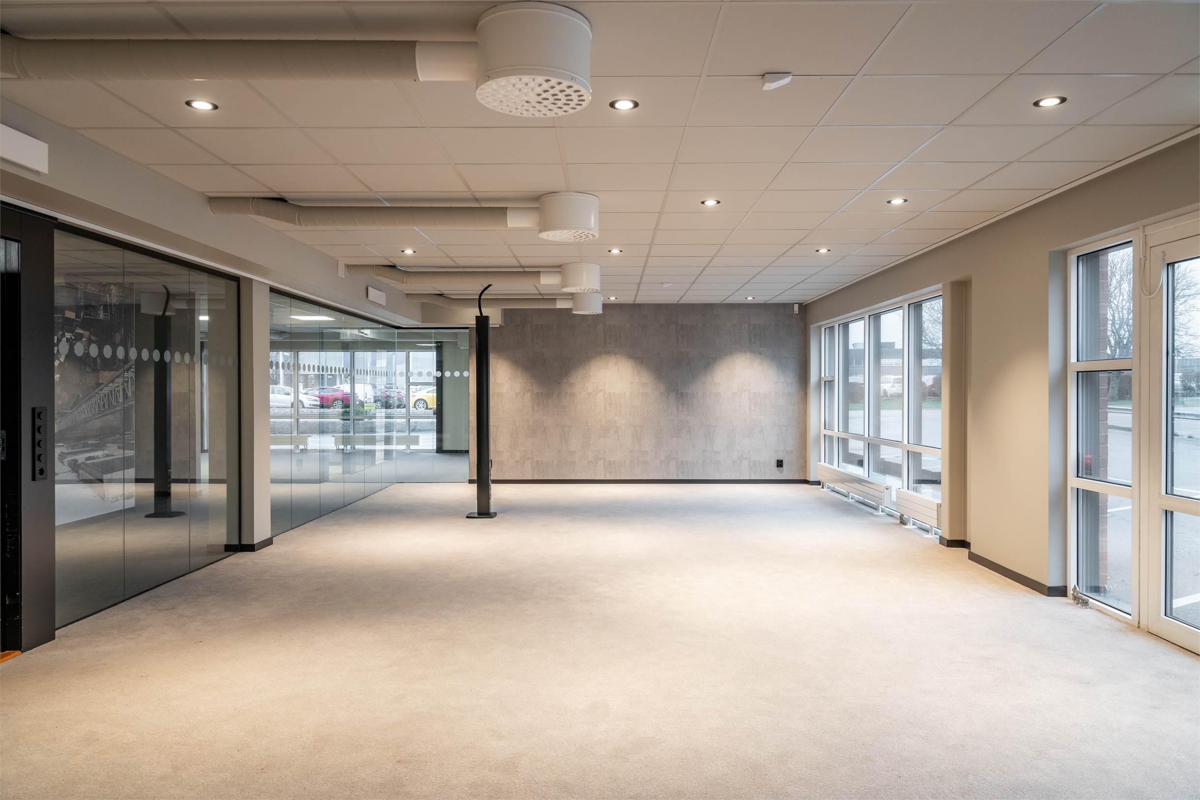 Stort och modernt kontor med ljusgård, lageralternativ och bra kommunikationer.