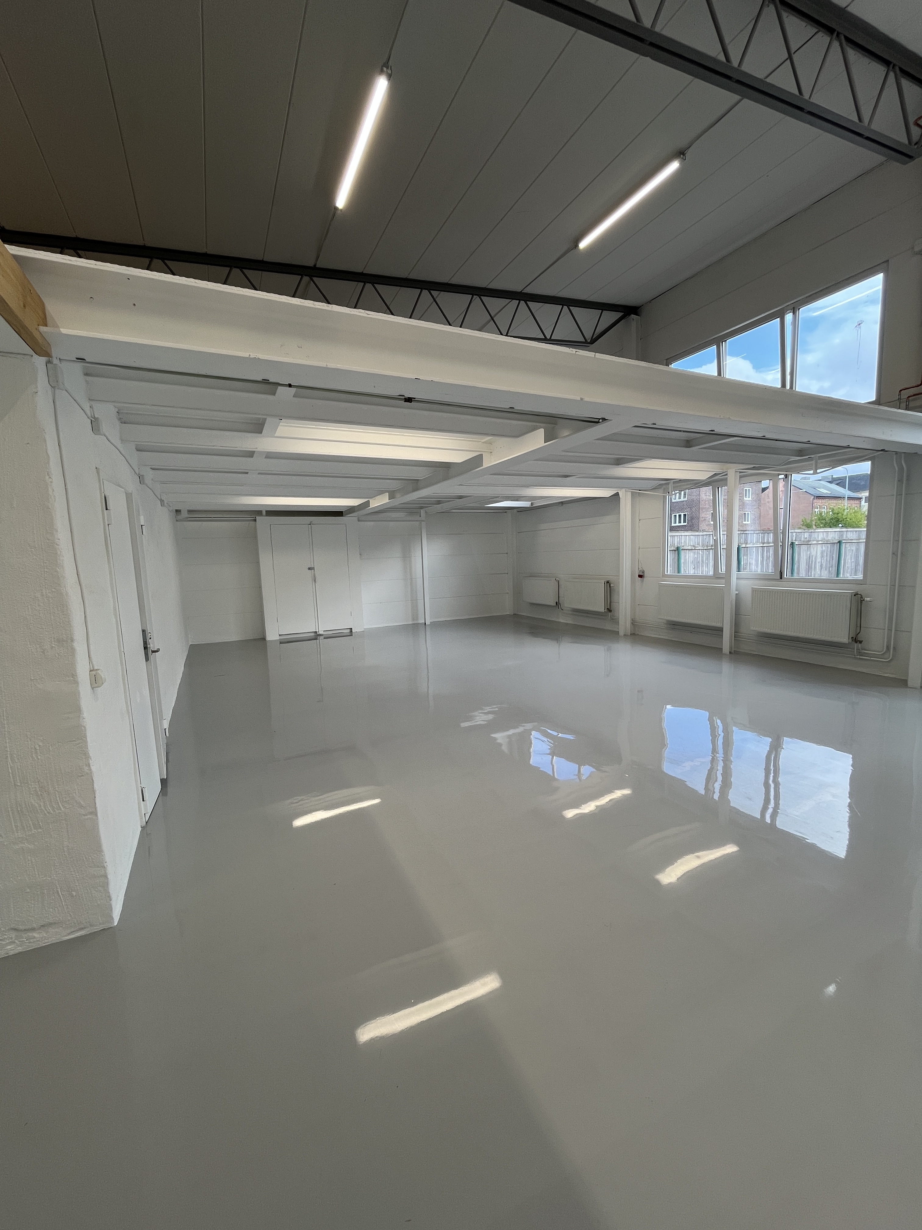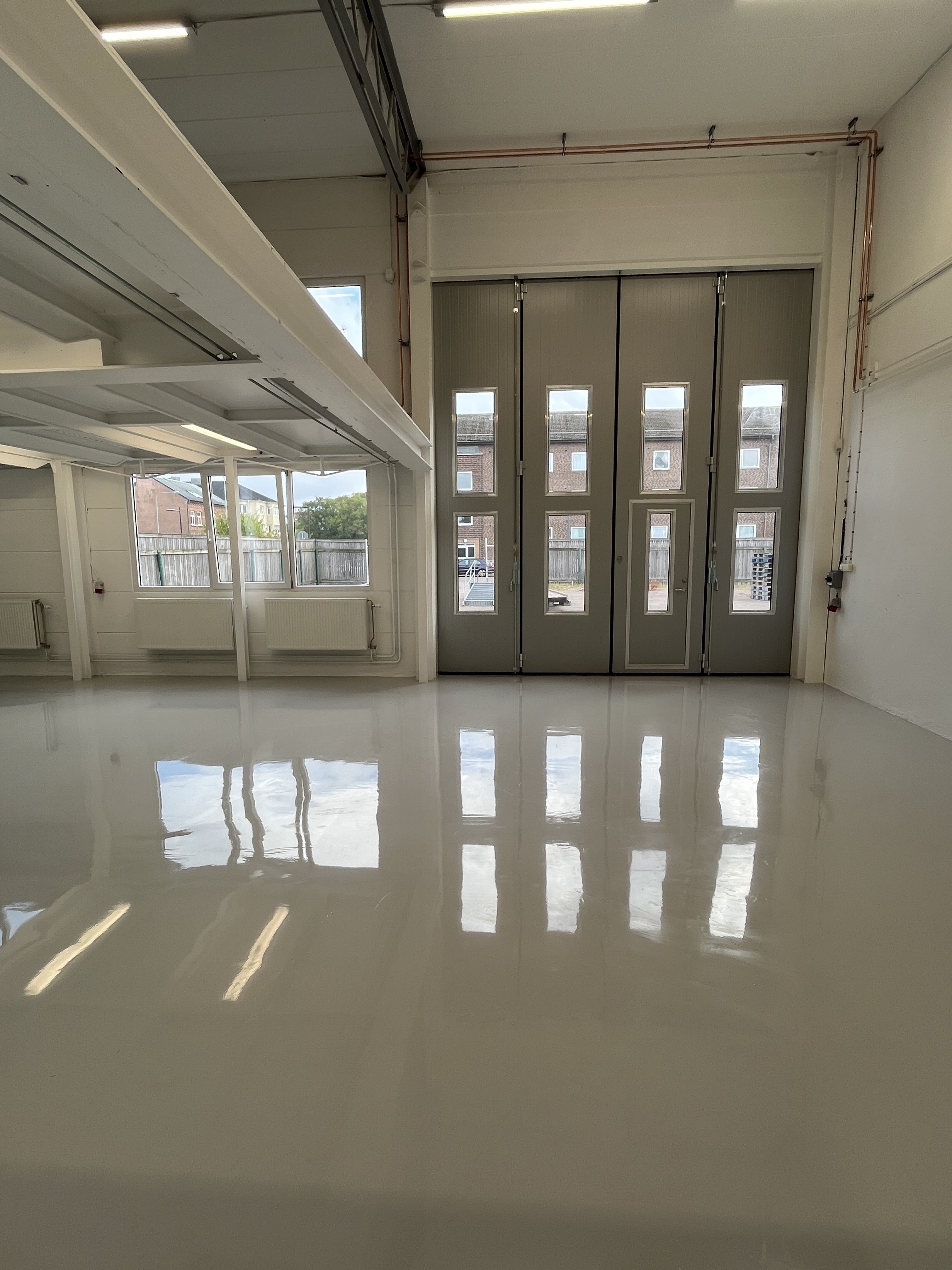 Stor vik-port för in - och utlastning samt ett större entrésol med betong och stålstomme. Nylagt epoxy golv i lokalen.