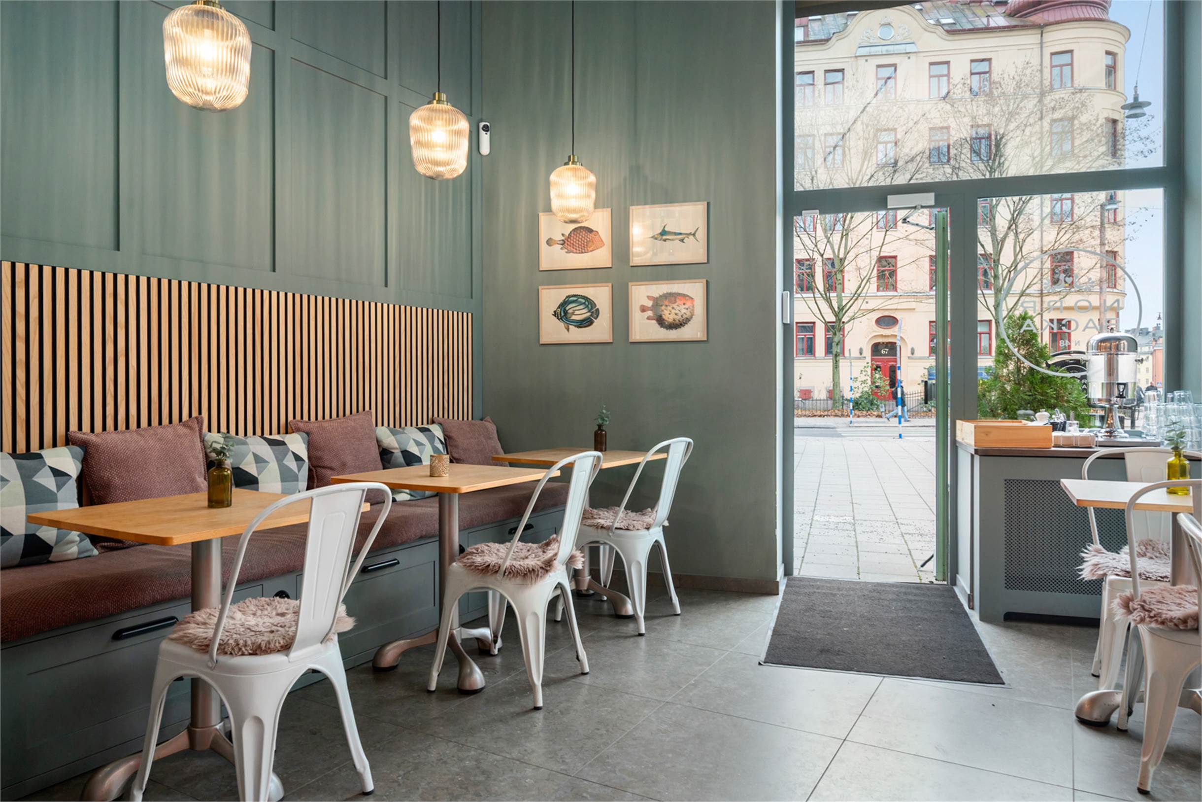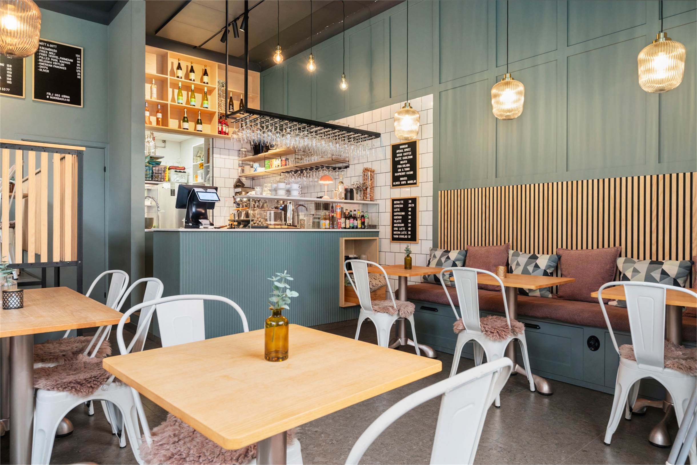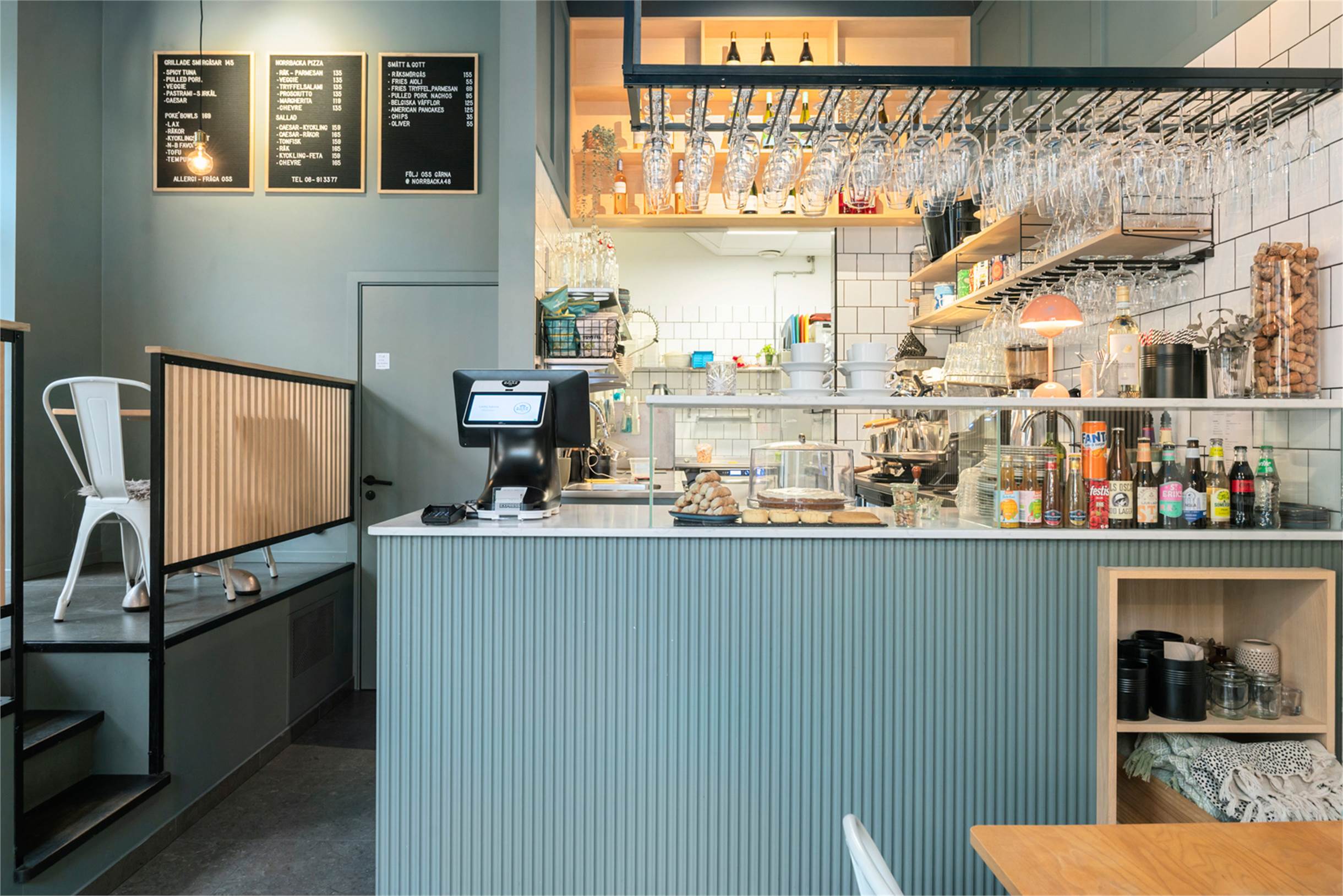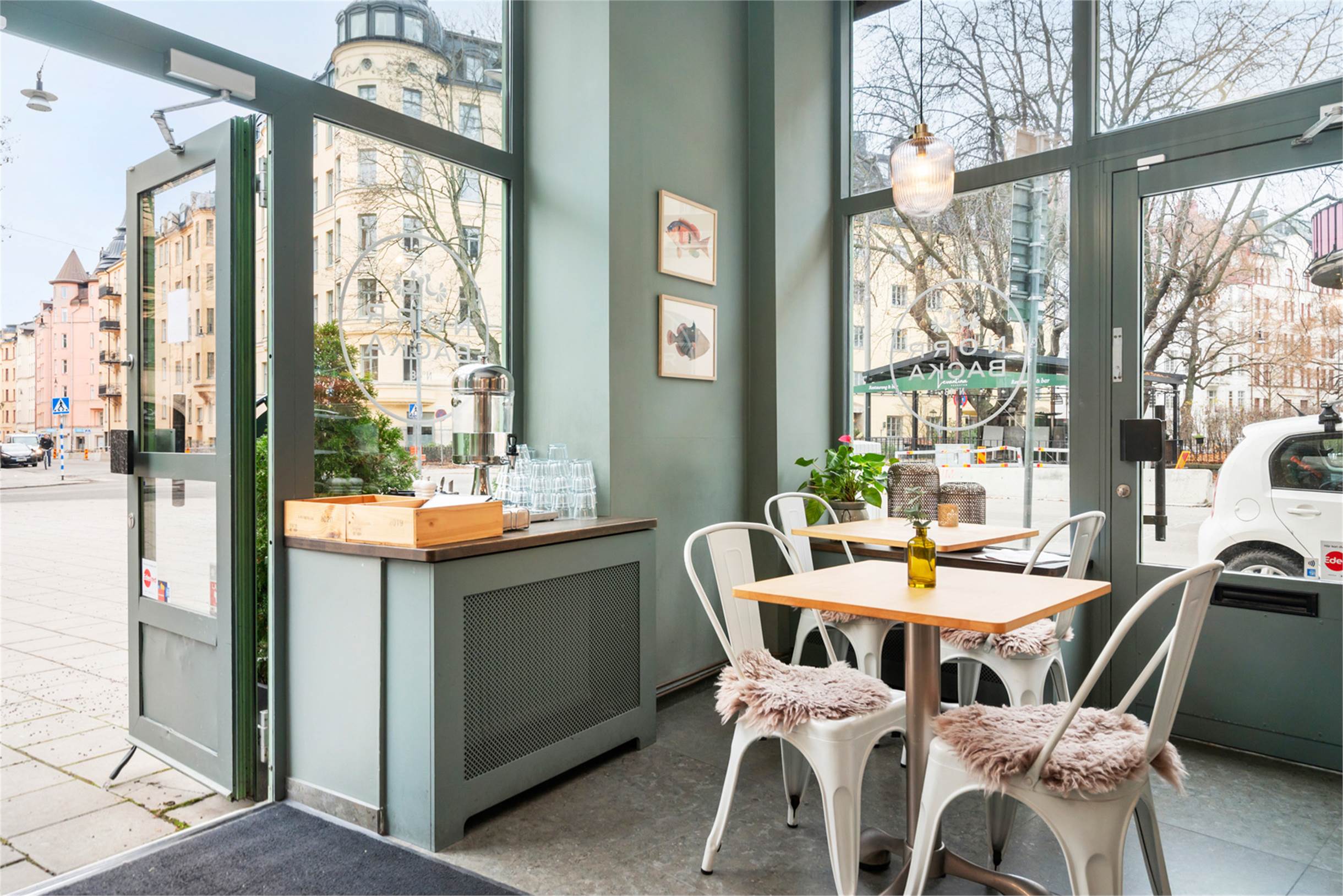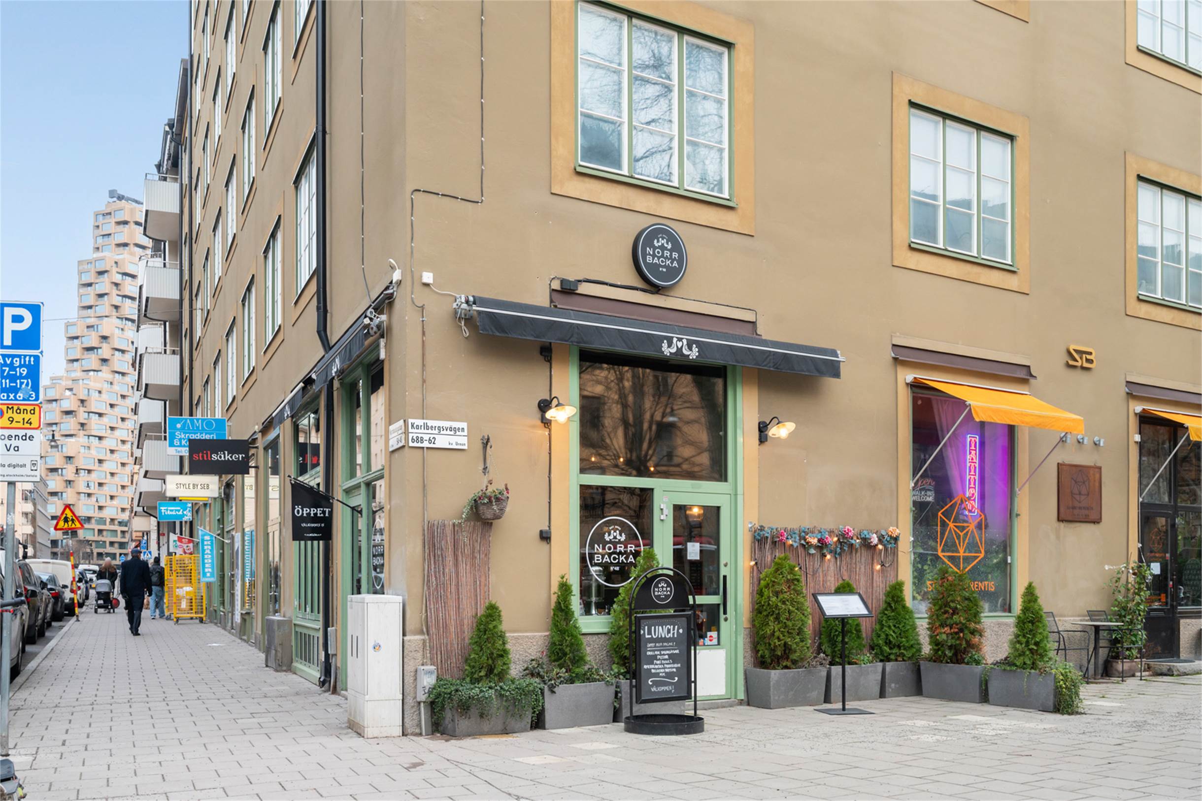 På hörnet av Karlbergsvägen och Norrbackagatan ligger denna mysiga lokal om 56 kvm. Lokalen har högt i tak och stora fönster i syd och västligt läge ger lokalen ett fint ljus. Idag är här ett familjeägt café med vinbar som är smakfullt inrett och mycket fina ytskikt. Dagens verksamhet startade upp under våren 2022 och då genomgick hela lokalen en totalrenovering. Inne finns plats för cirka 25 gäster i matsalen. Sommartid finns plats för ytterligare cirka 30 gäster ute på den fina uteserveringen i söderläge framför lokalen. Uteserveringens kapacitet går att utöka till fler gäster då det finns större plats där. Passar perfekt som café och bar med enkare matservering som pizza, sallader, mackor och bowls. Lokalen har ej ventilation anpassad för stek, grill eller firtyr.