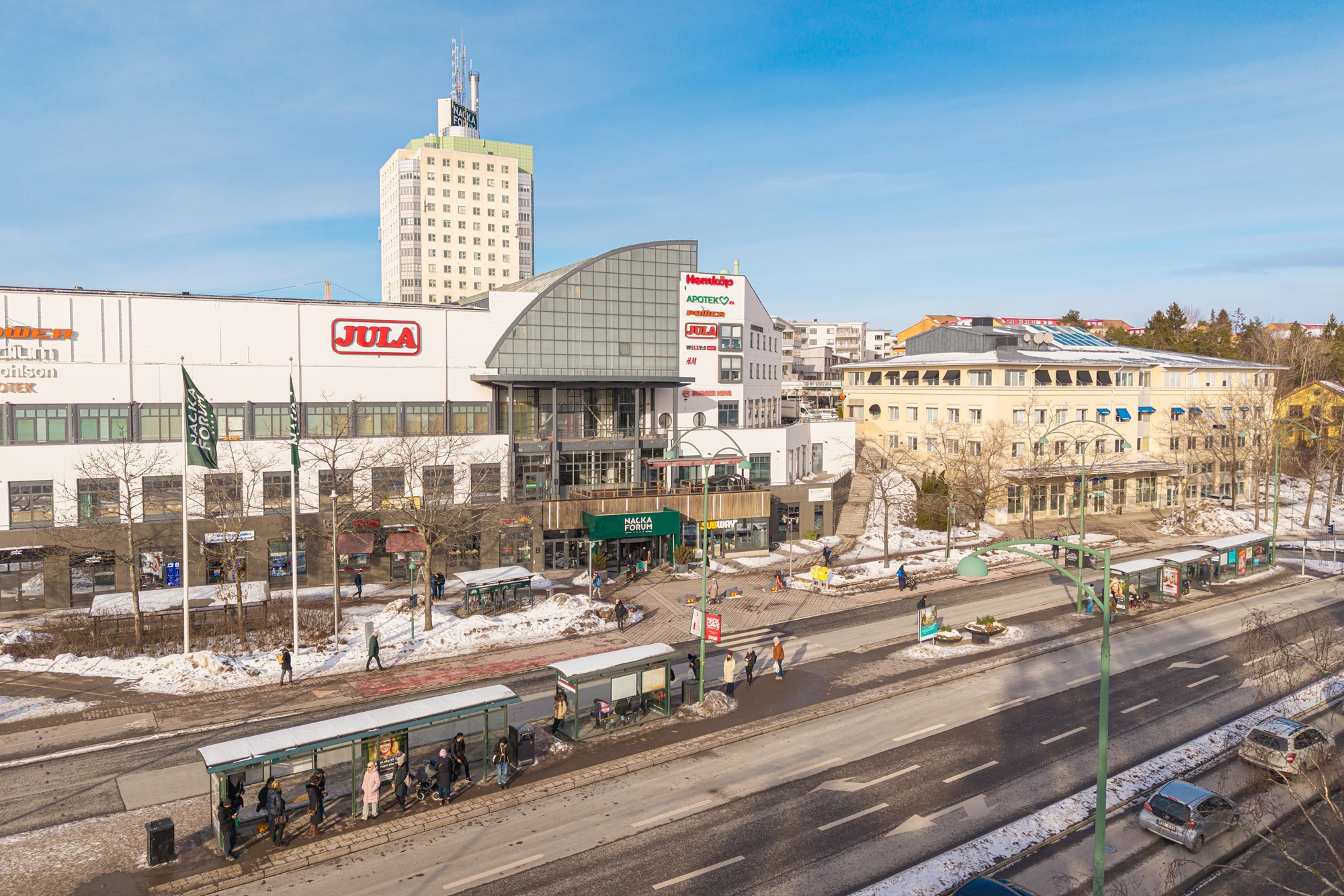 Mitt emot lokalen hittar du köpcentrumet Nacka Forum