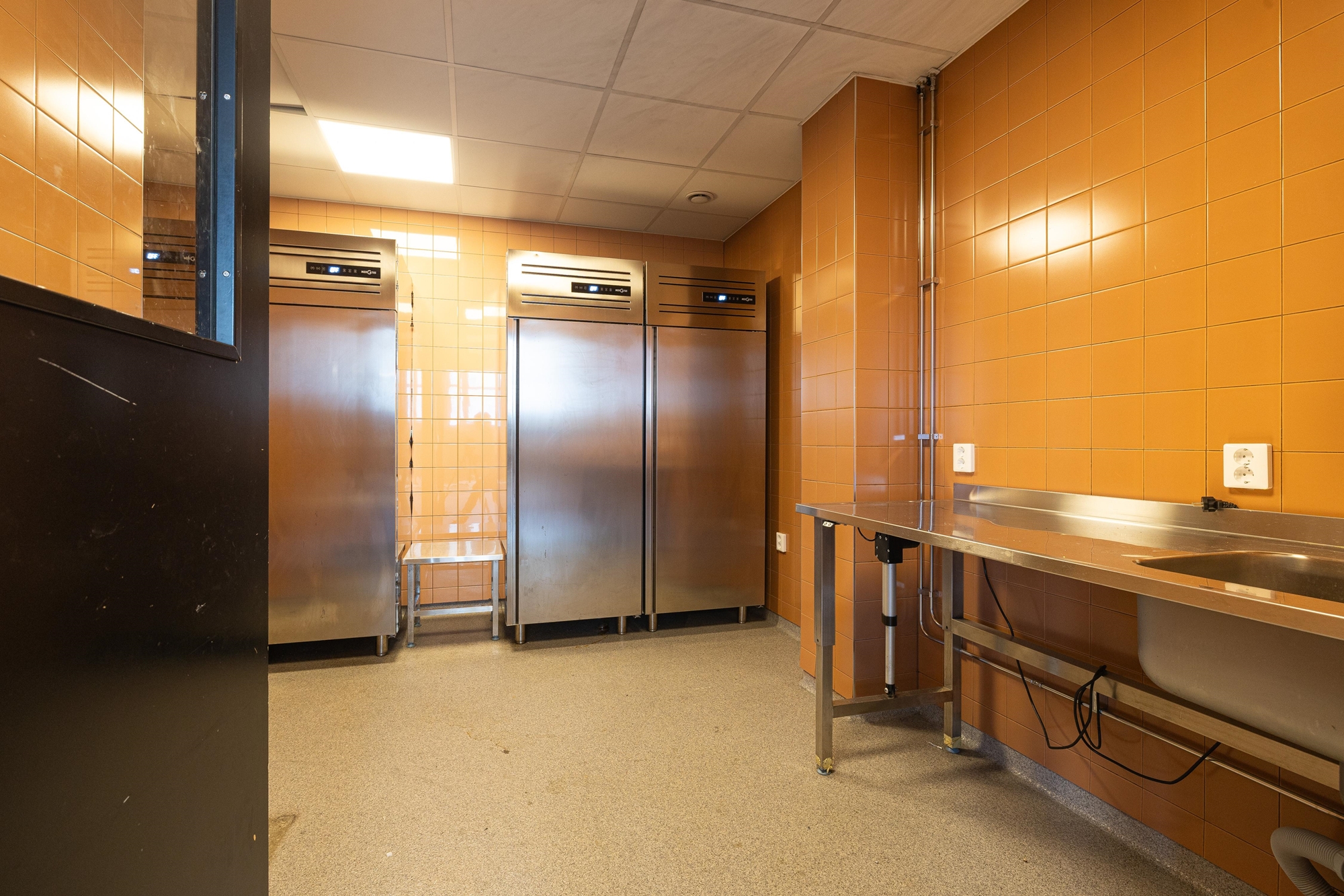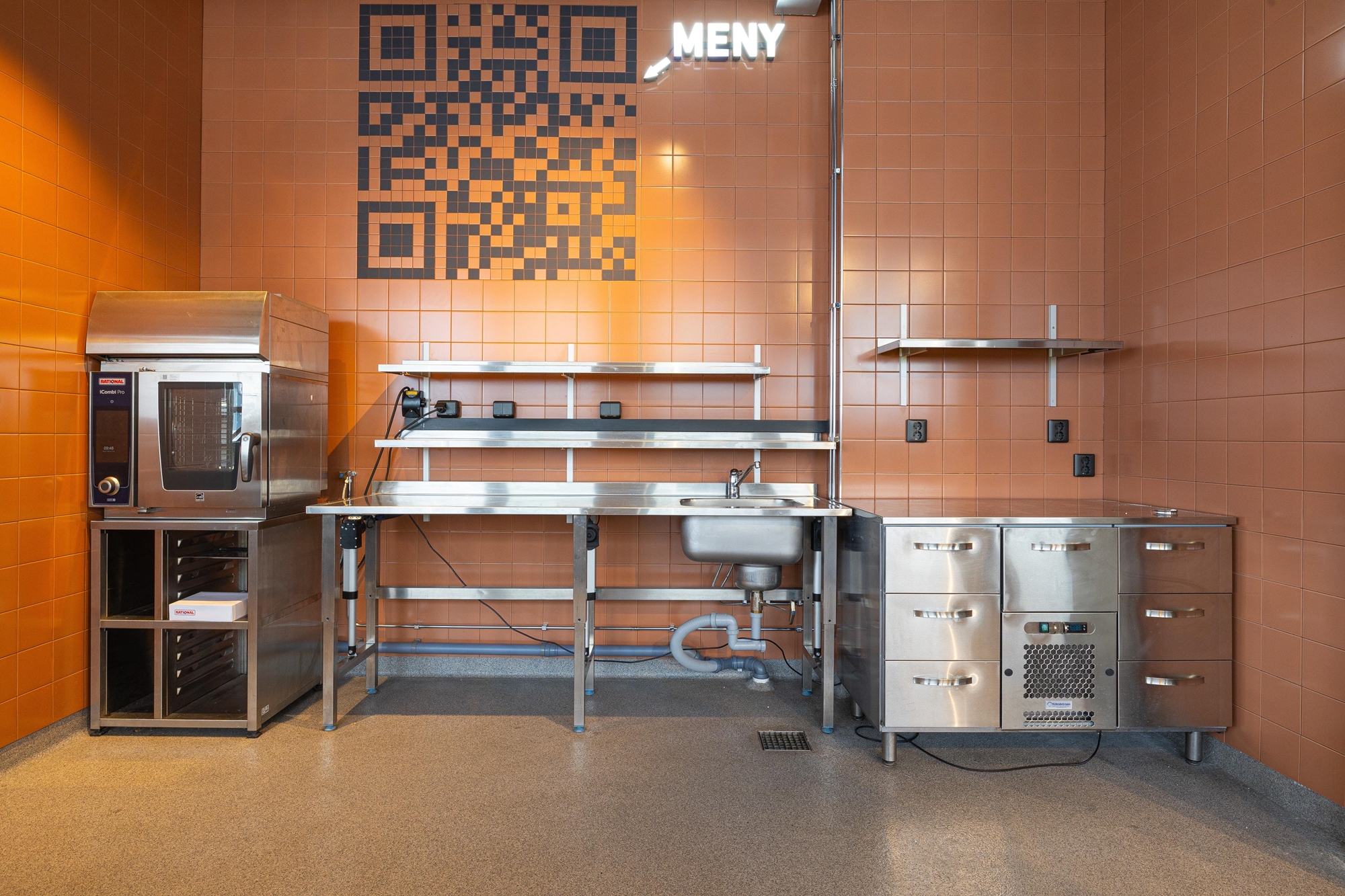 -Möjlighet till servering och försäljning av mat som kan värmas på plats (fettavskiljare och golvbrnnar finns. Ingen stekning eller fritering tillåten)